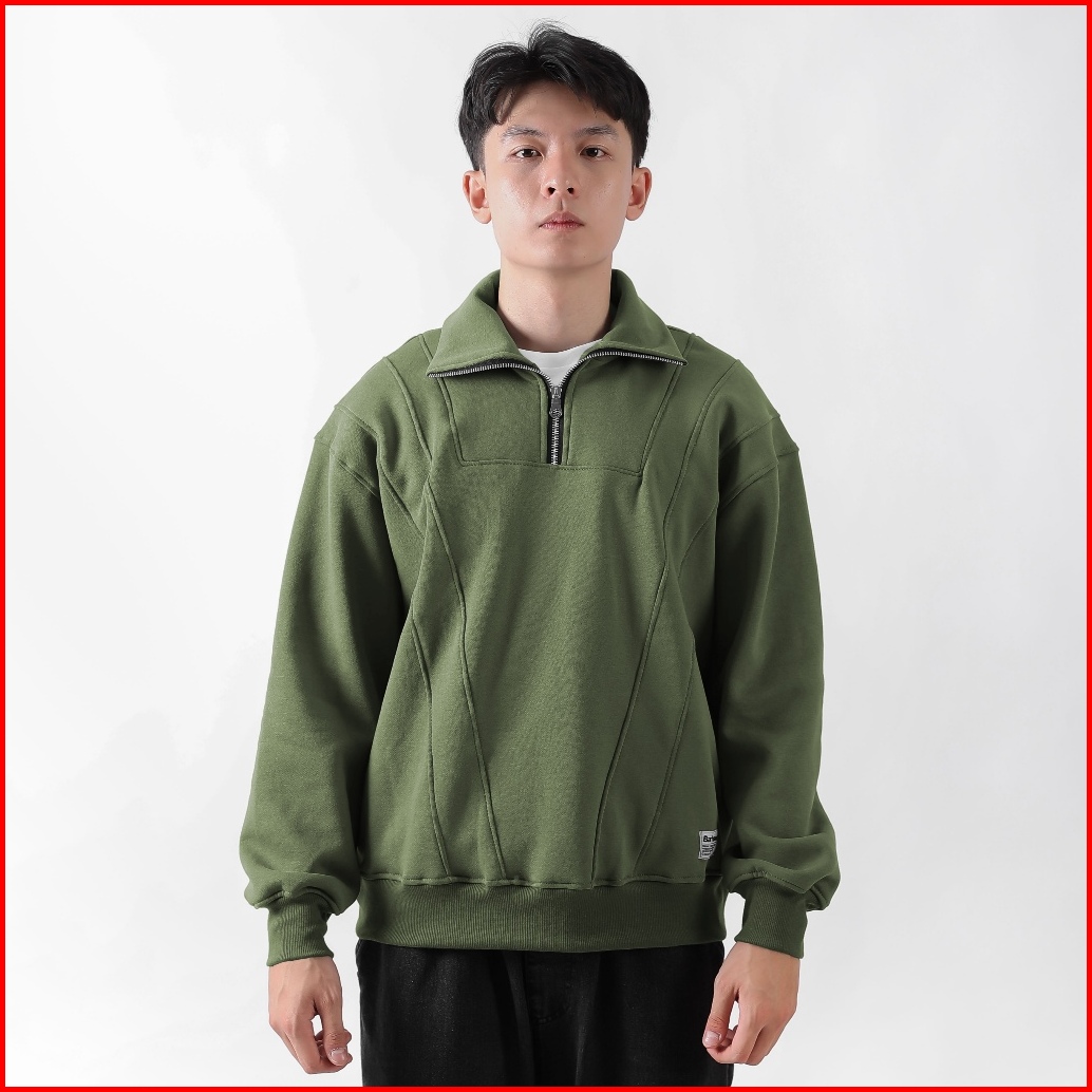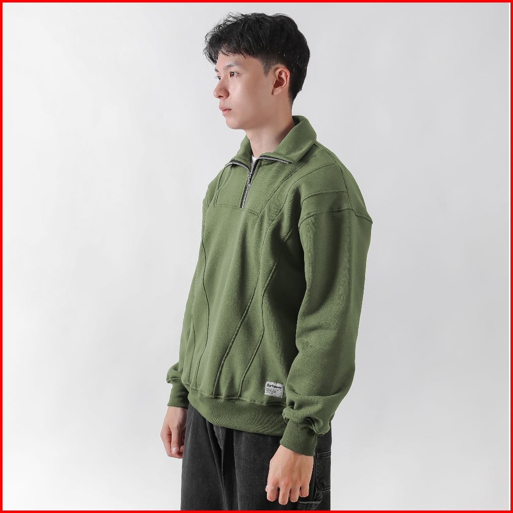 Barhaws - Sweater Half Zipper Boxy Cotton Pria Wanita Warna Olive