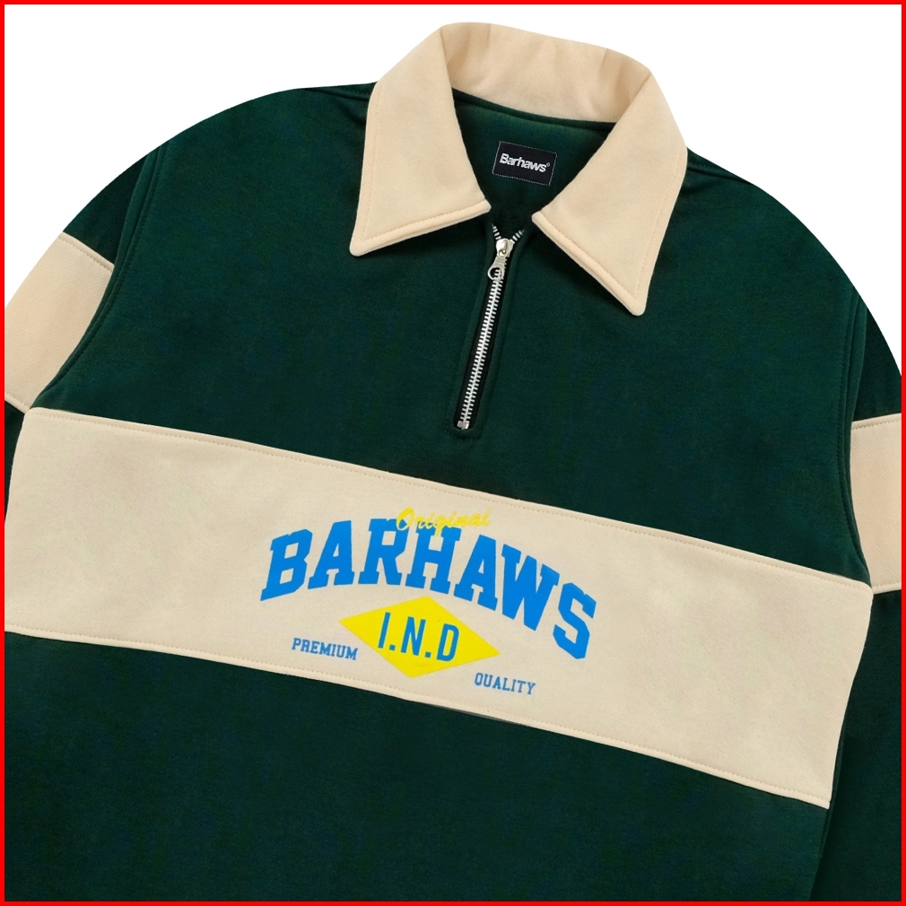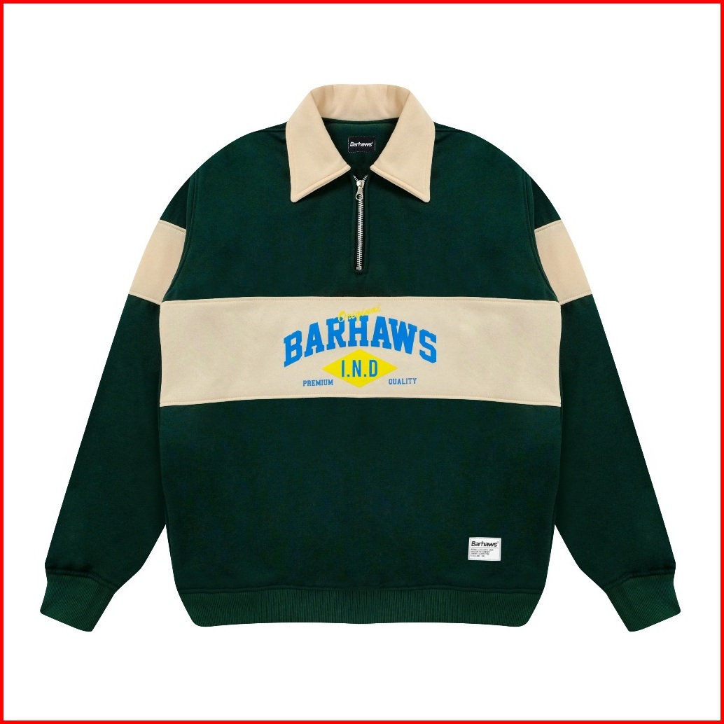 Barhaws - Sweater Half Zipper Rugby Kombinasi Infinity Hijau