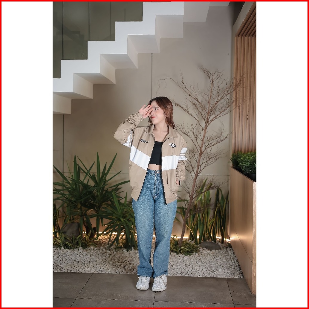 Barhaws - Jacket Tracksuit Star Bahan Taslan Windproof Outer Pria Wanita Warna Cokelat