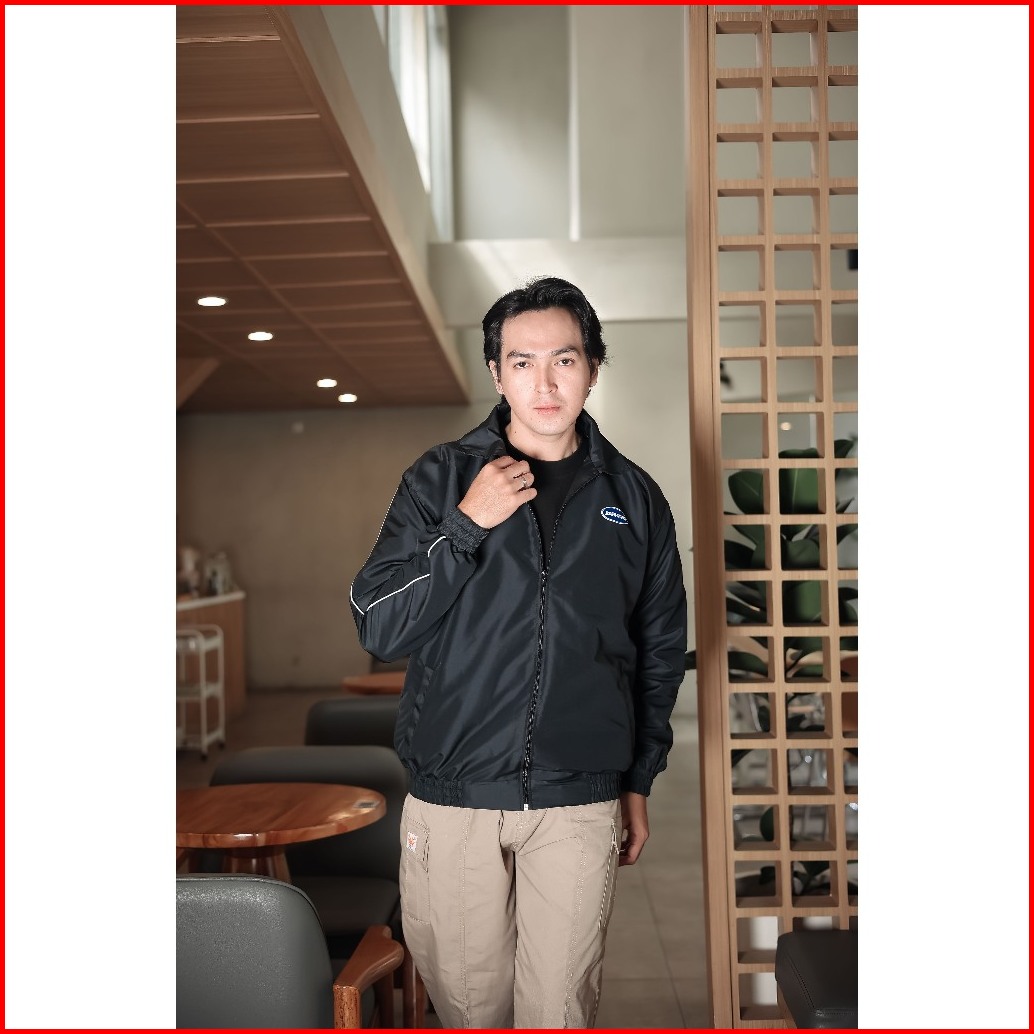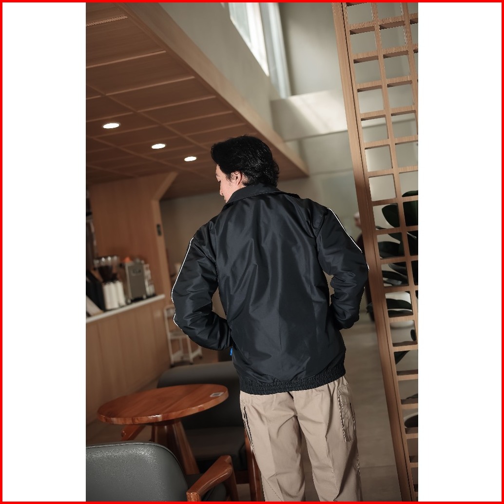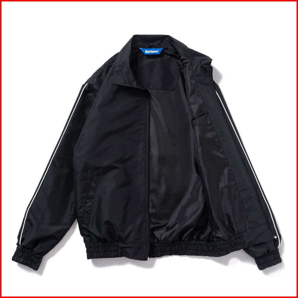 Barhaws - Jacket Tracksuit Stripe Bahan Taslan Windproof Outer Pria Wanita Warna Hitam