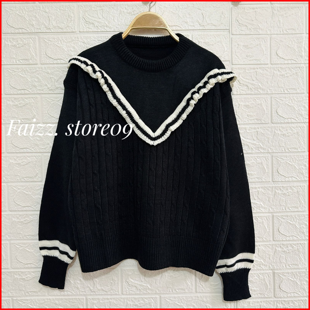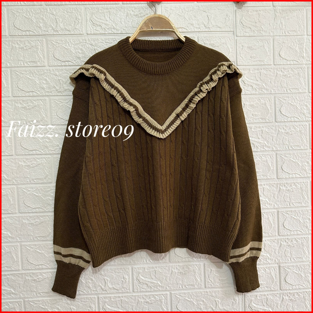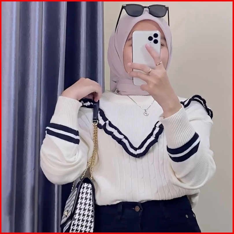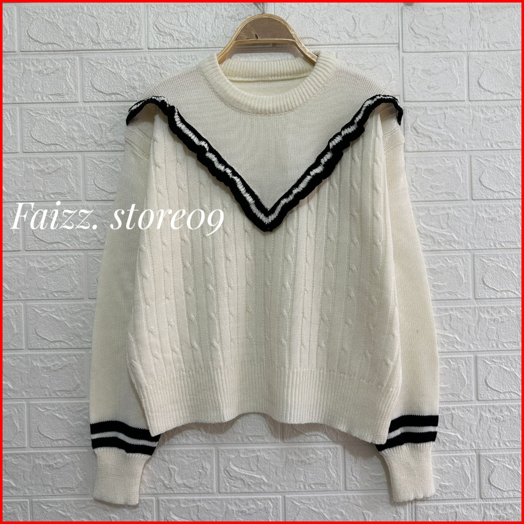 Diba Sweater Rajut Renda Motif Cable Stripe Atasan Wanita