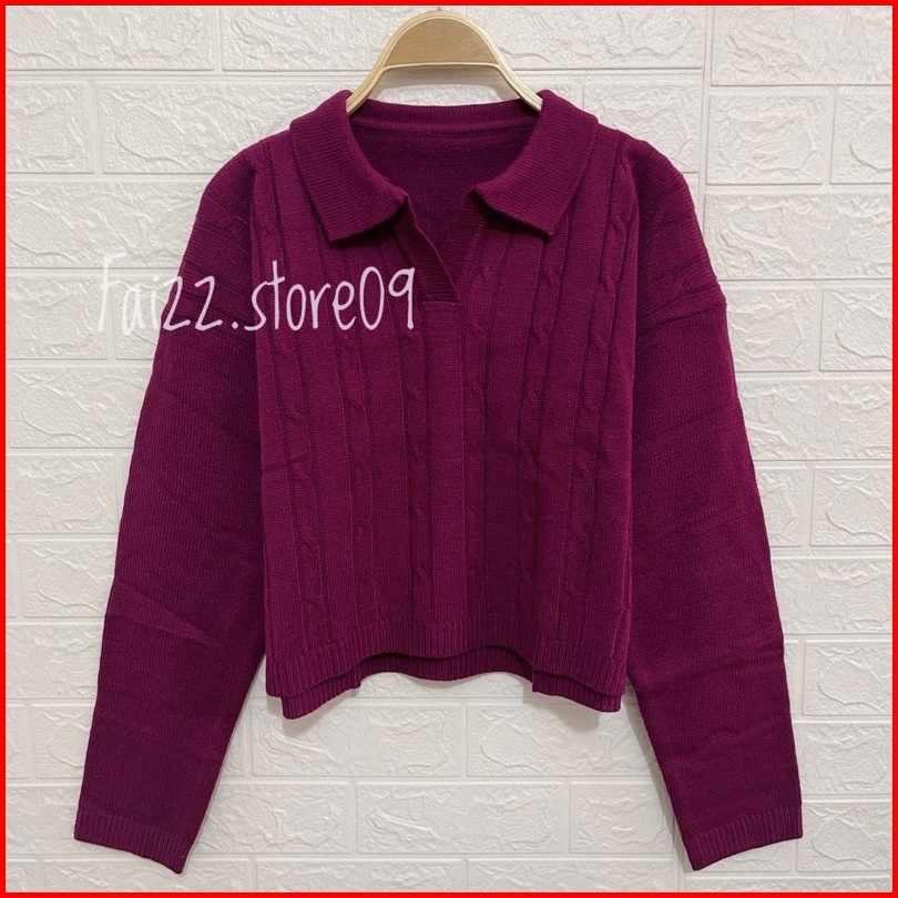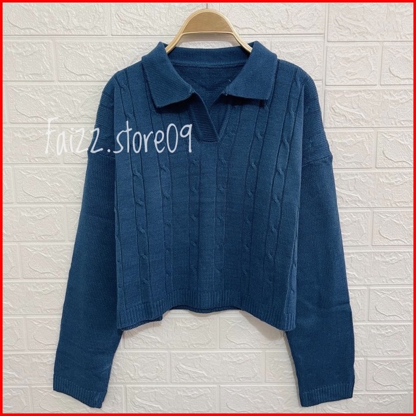 Blouse Rajut Kerah Model Cable Tebal Bahan Lembut