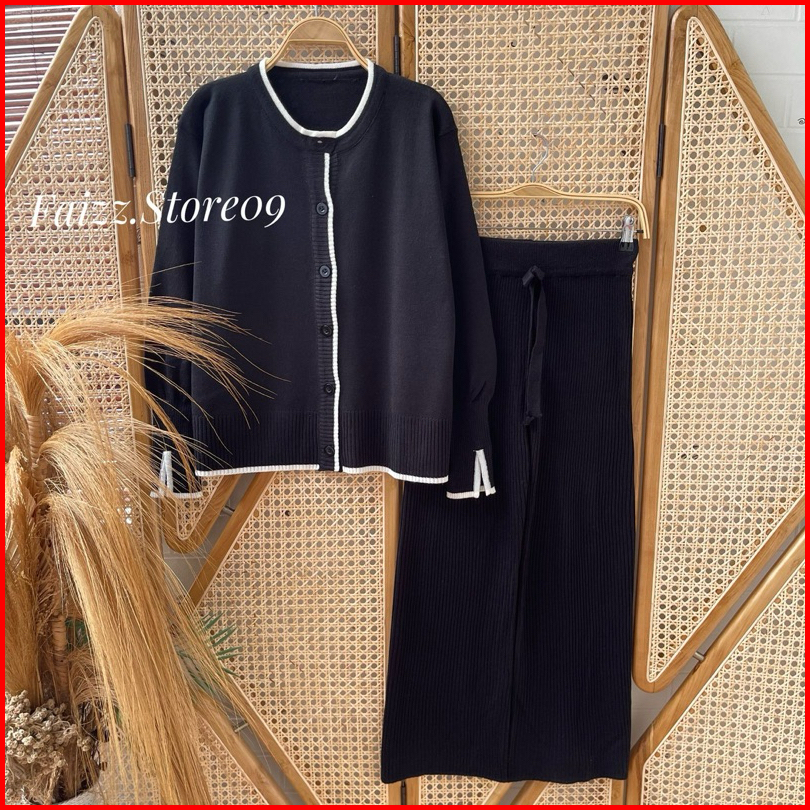Oneset Cika Cardigan Rajut Wanita Motif Belahan Tangan Setelan Celana Kulot Wanita Premium Kekinian