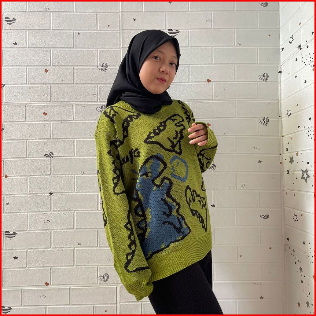 Dino Sweater Rajut Oversize Korea Update Warna Terbaru