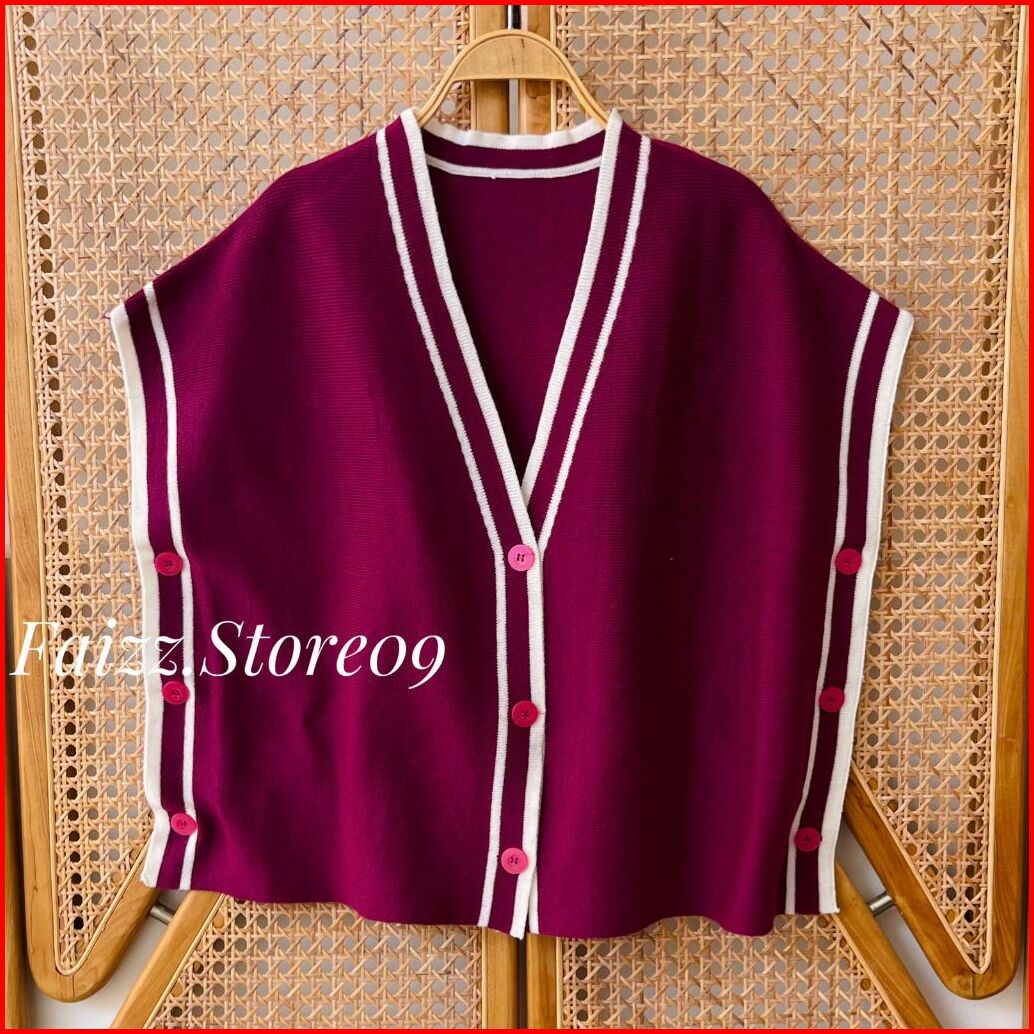 Savage Atasan Knit - Vest Rompi Rajut Kancing Motif Stripe Lucu Desain Moderen Korean Style
