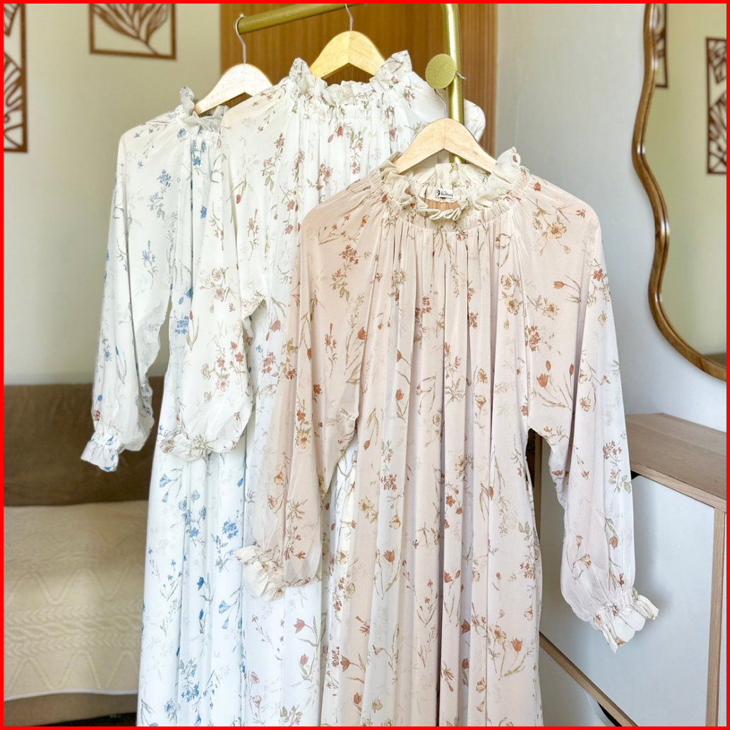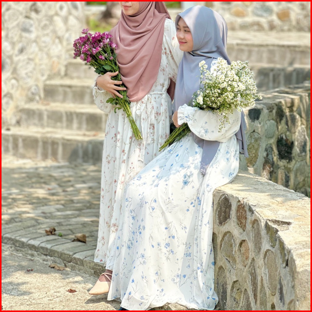 Hijabbydara - Viora Dress Motif Bahan Chiffon Motif Gamis Motif Elegan Mewah Wanita Muslim Dewasa Remaja