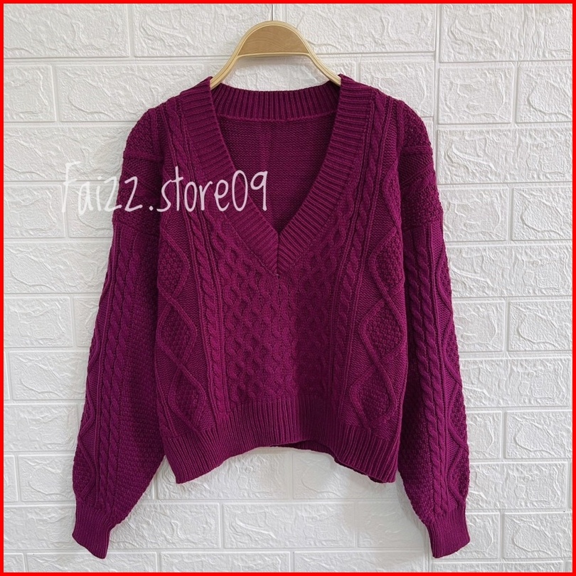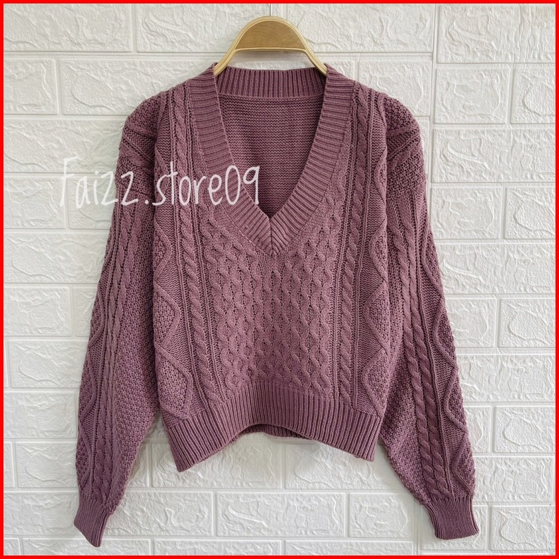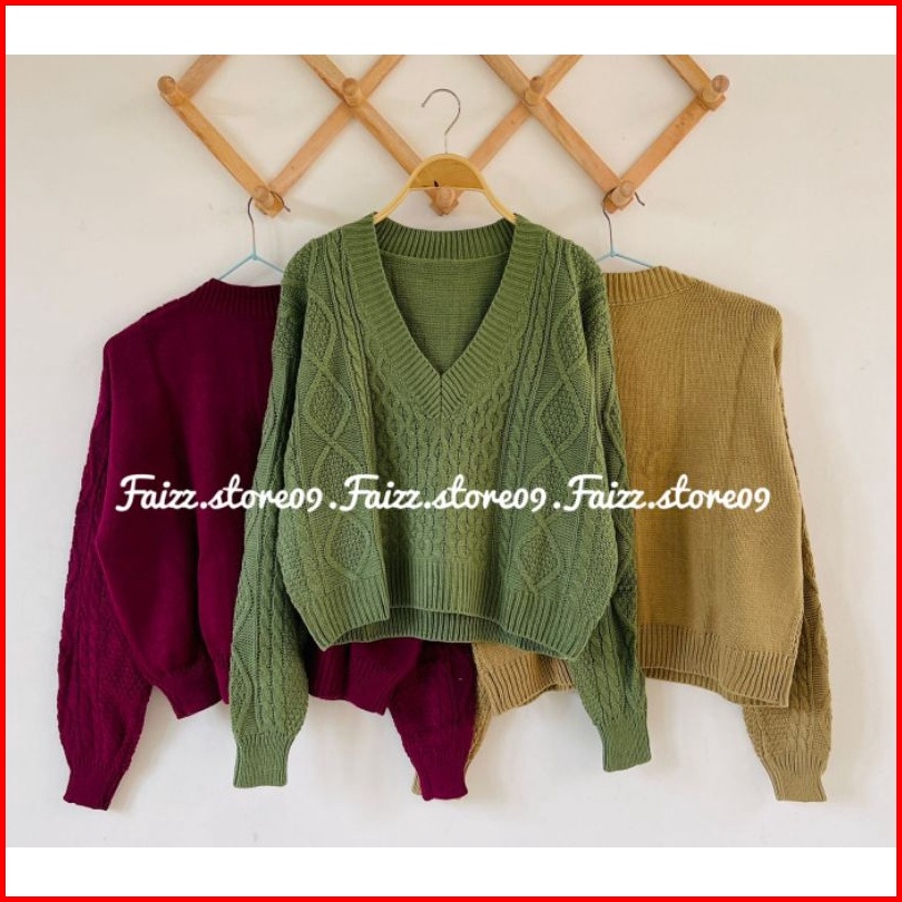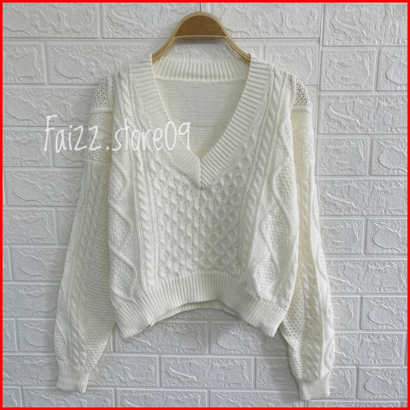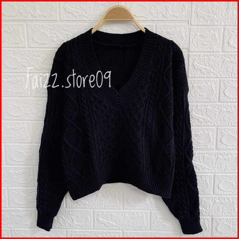 Sweater Rajut Crop Rihanna Kerah V Motif Sido Cable Rajut Premium 5 Gate Store09