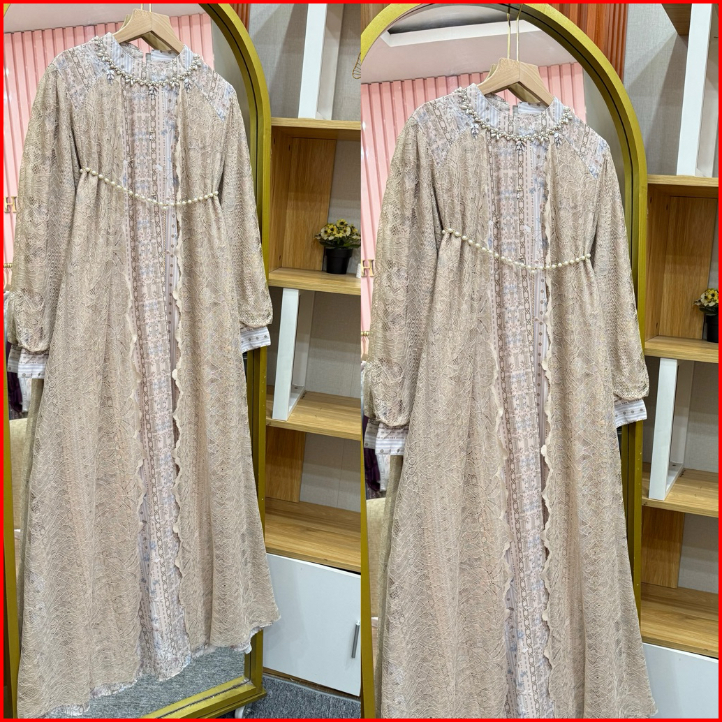 Fatunhijabs - Gema Maxi Dress Bahan Ceruty Mix Chantily Gamis Wanita - Free Belt