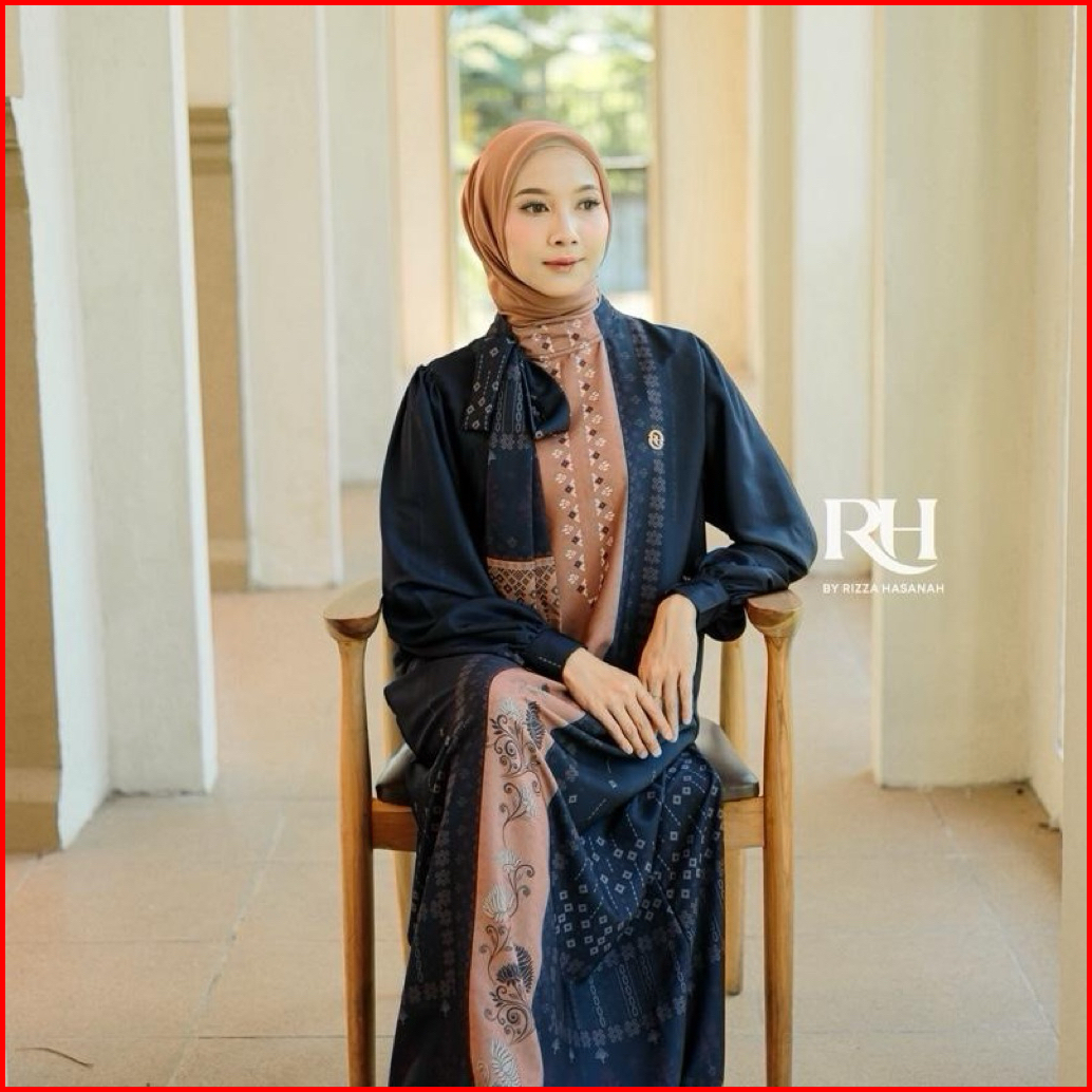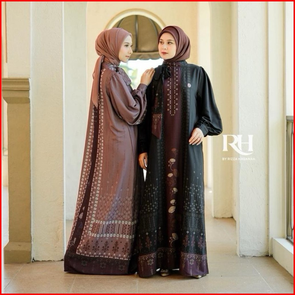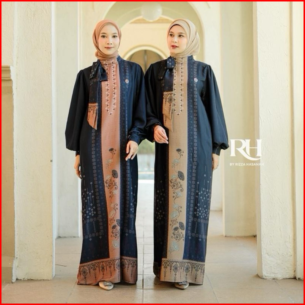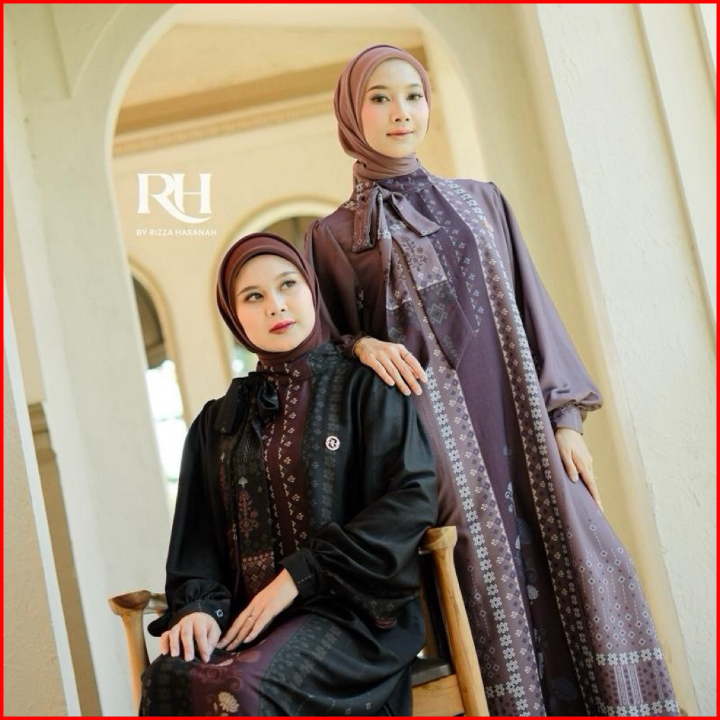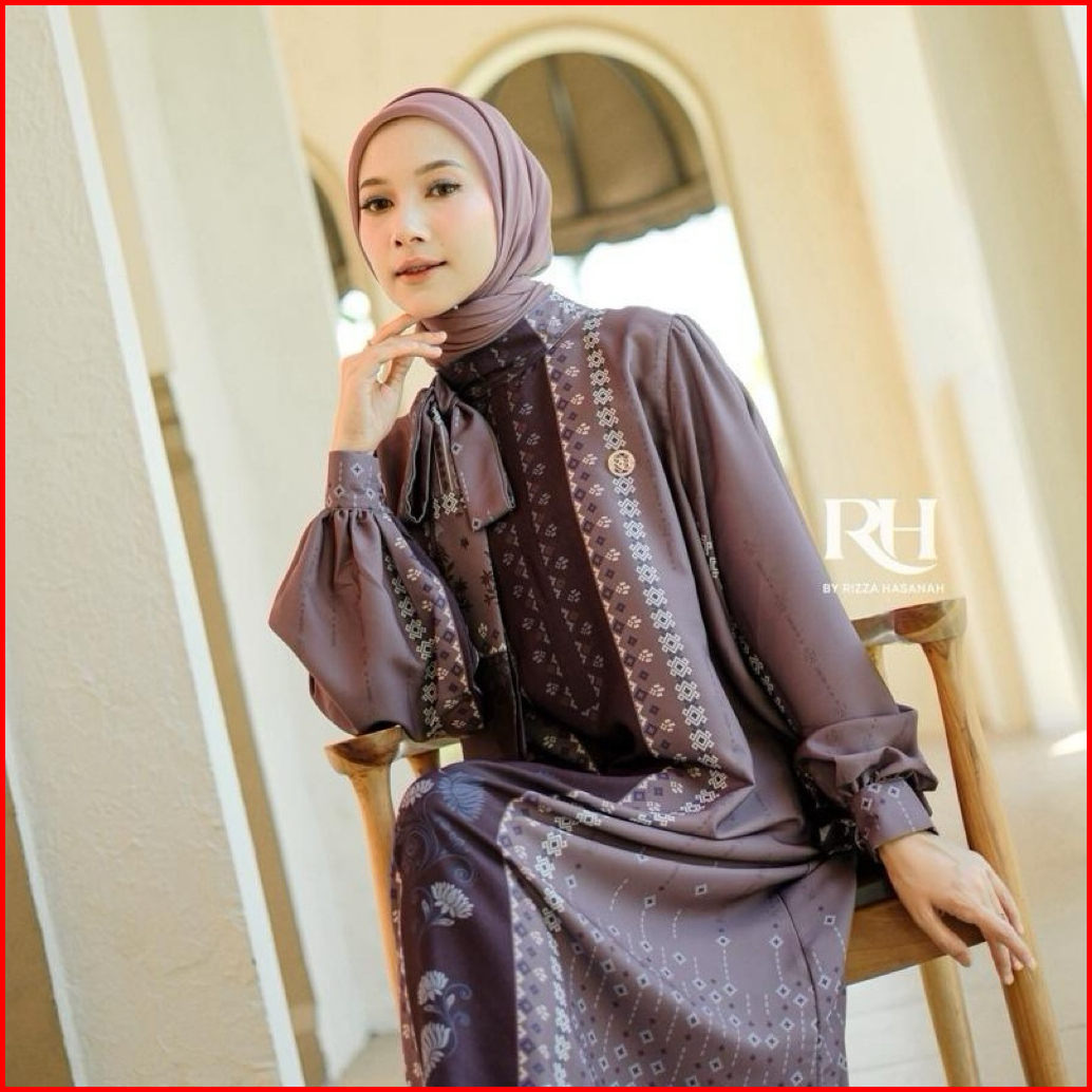 Rh Col Khalisa Dress Raya Series 2026 Bahan Silk Motif Gamis Wanita Muslim Elegan Simple
