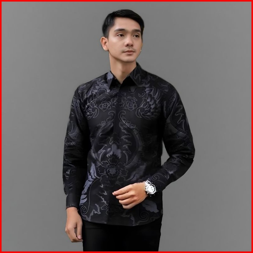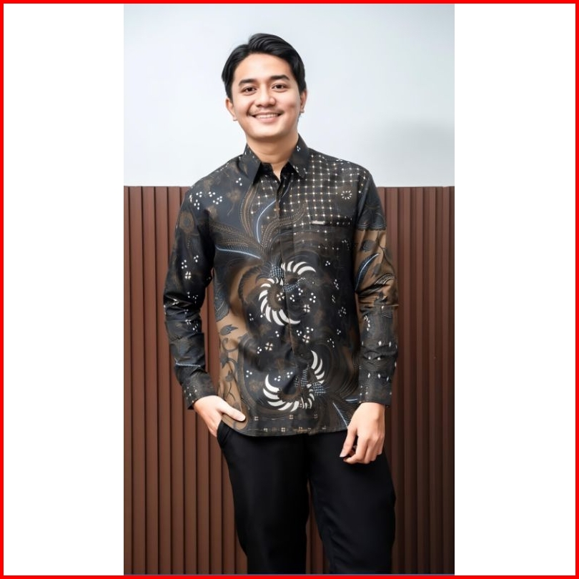 Aima Batik Landak Hitam Kemeja Batik Pria Lengan Panjang Baju Batik Laskala Size M L Xl Xxl