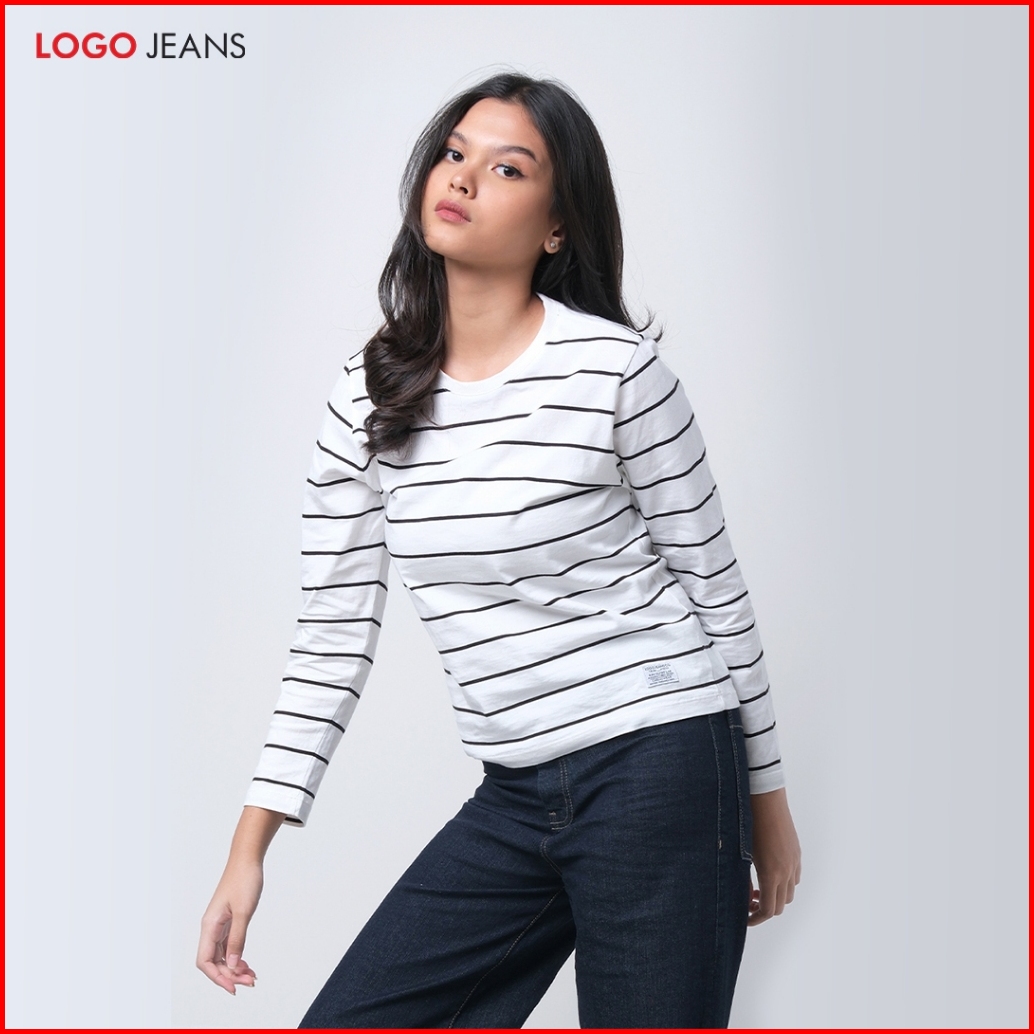 Logo Jeans Kaos Wanita Felysia Offwhite Black Stripe 14858l4oh