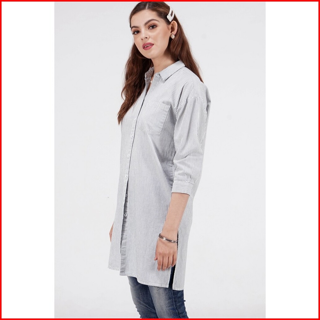 Ninety Degrees Kemeja Wanita Pear White Navy 23584d2wv