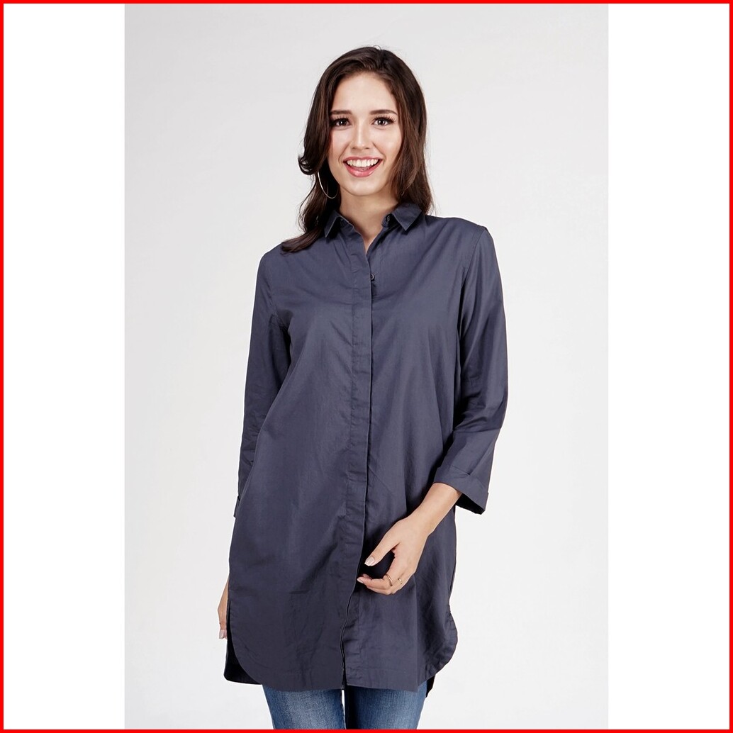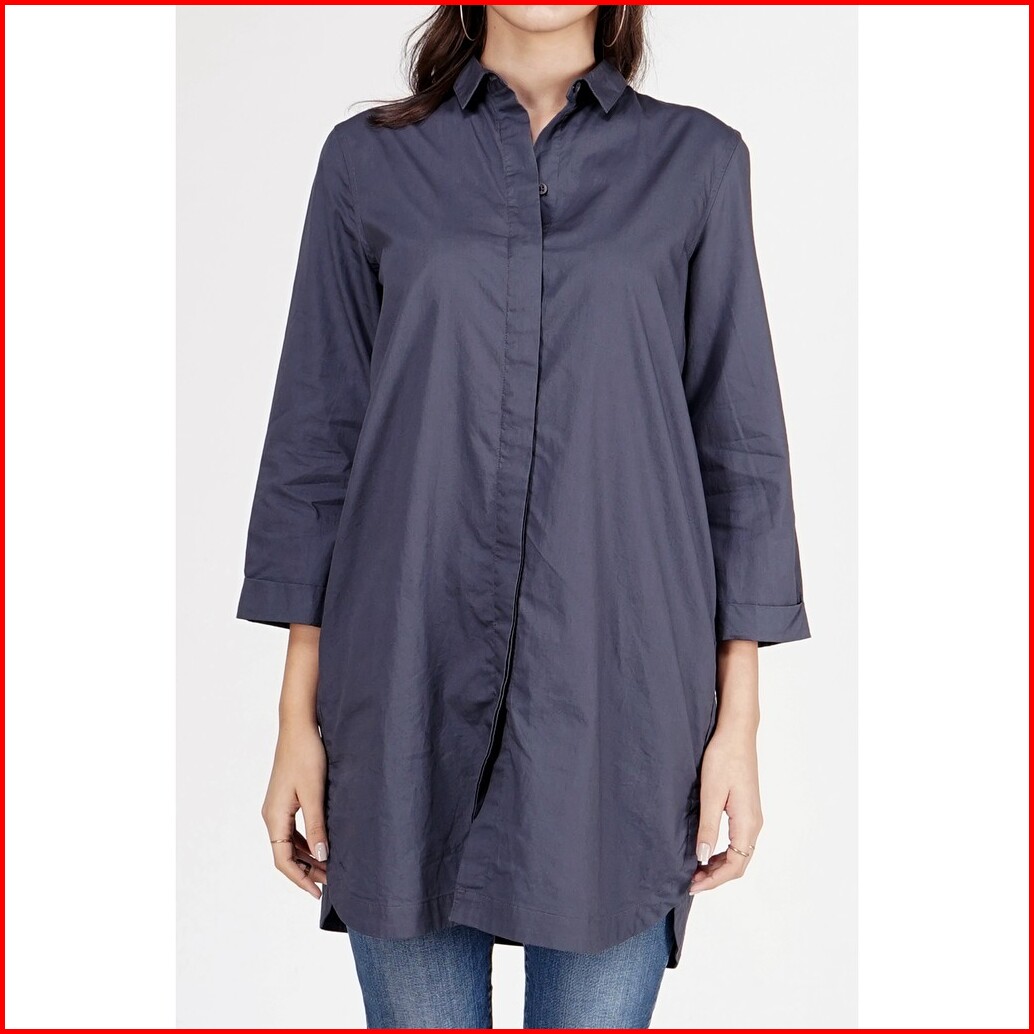 Ninety Degrees Kemeja Wanita Balted Dark Grey 23539d5dg
