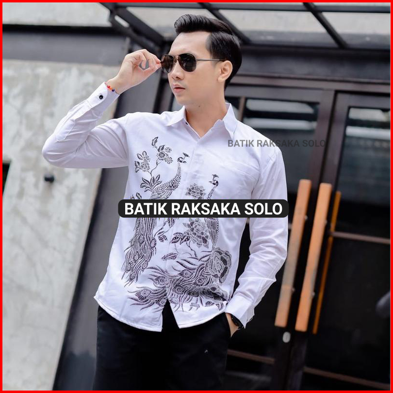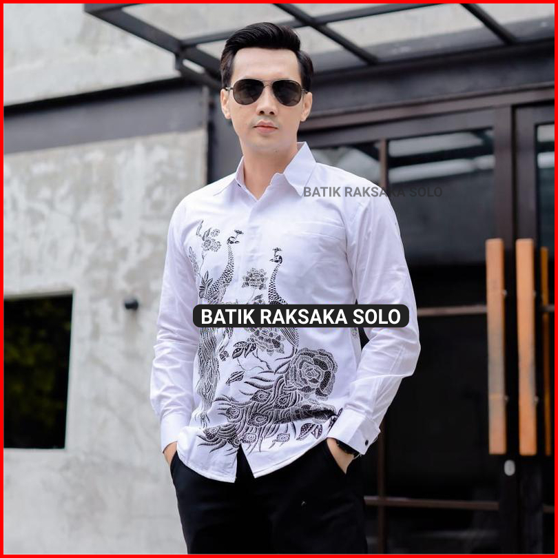 Kemeja Batik Pria Cowok Slimfit Premium Motif Azriel Full Furing Baju Lengan Panjang Warna Putih