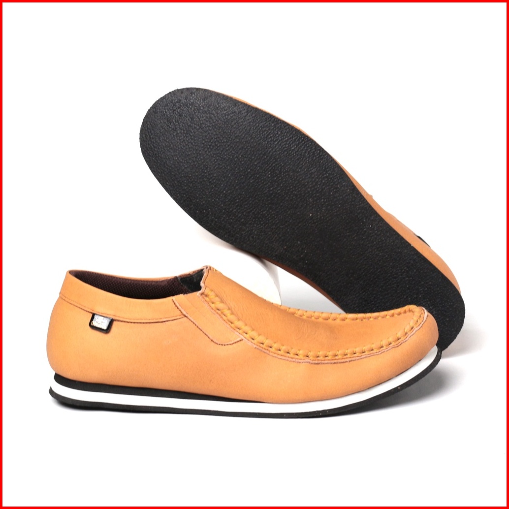 Cevany Sepatu Pria Kasual Slip On Kulit Asli Geovani S - G09 Tan
