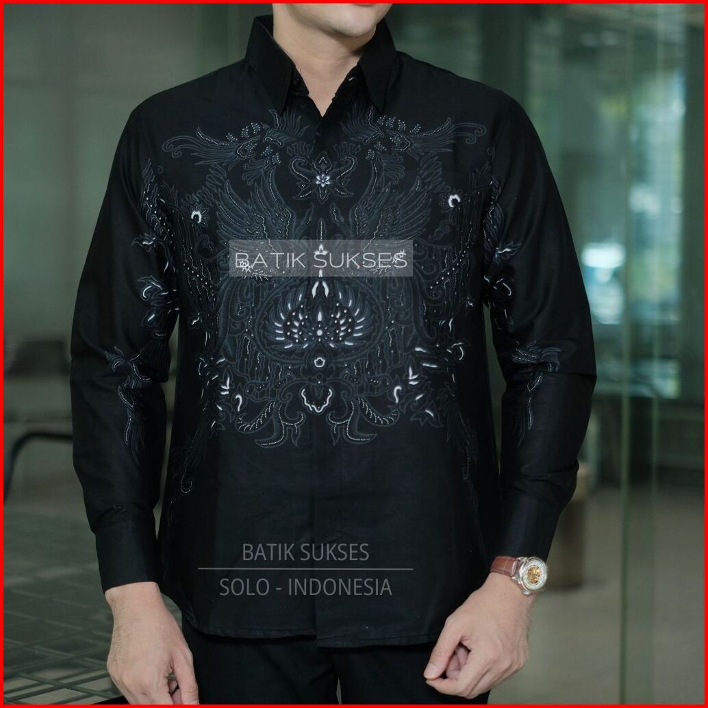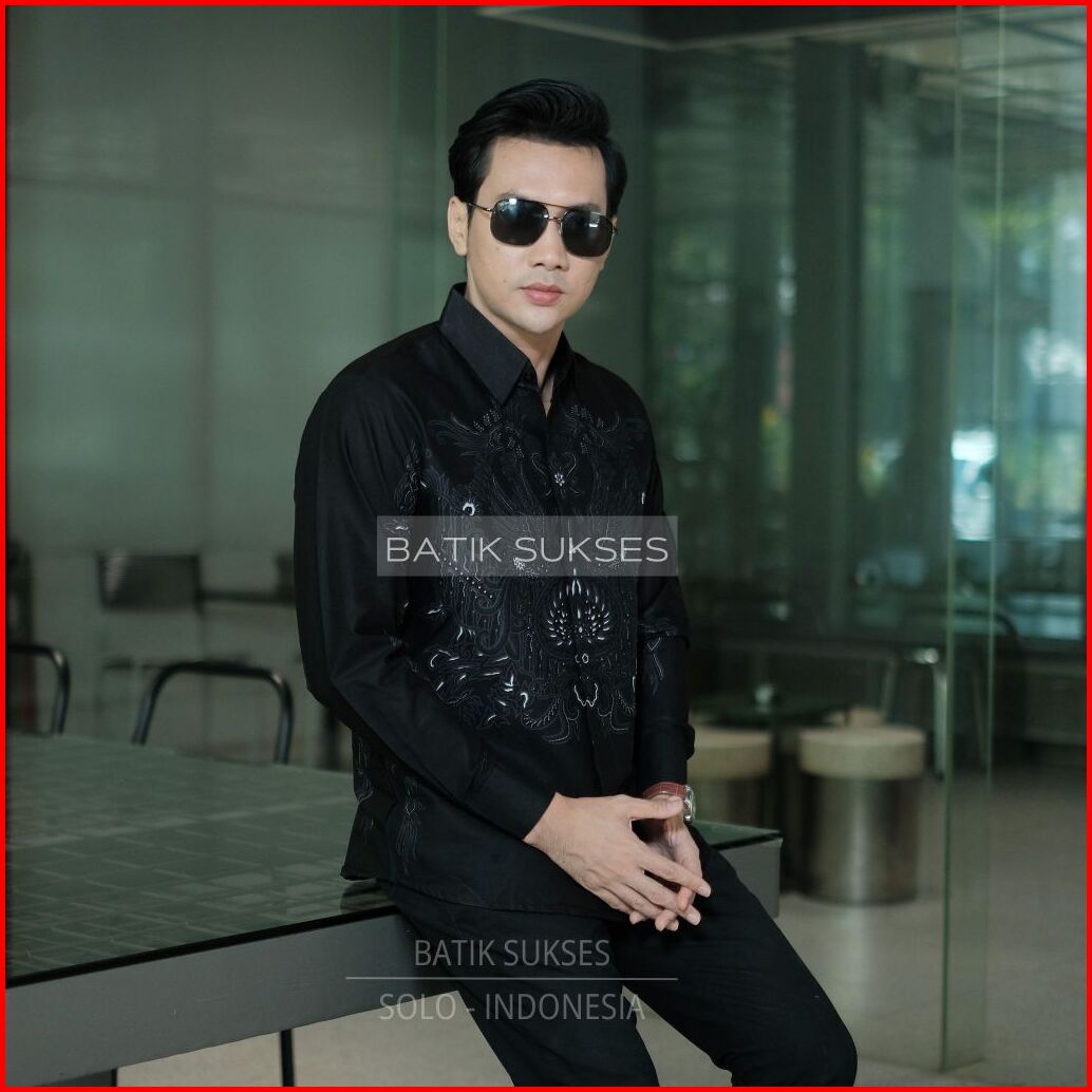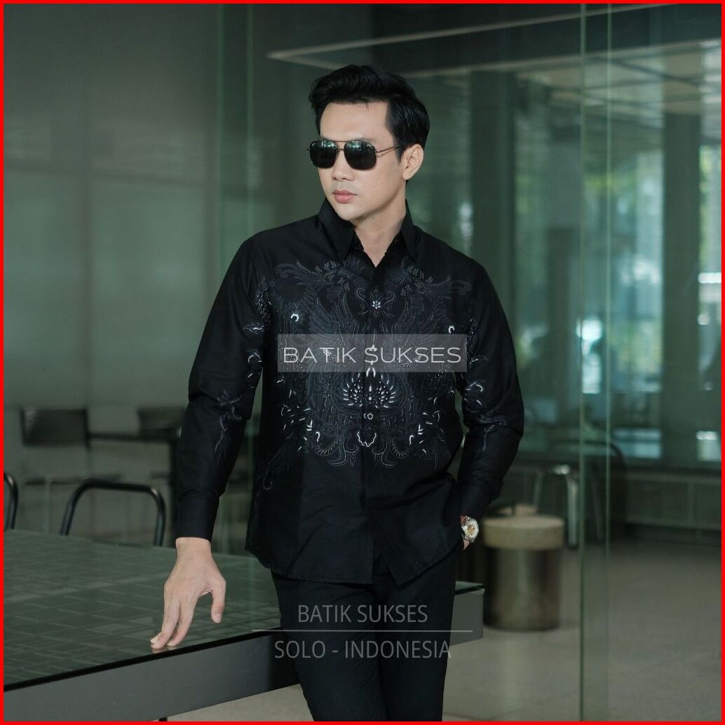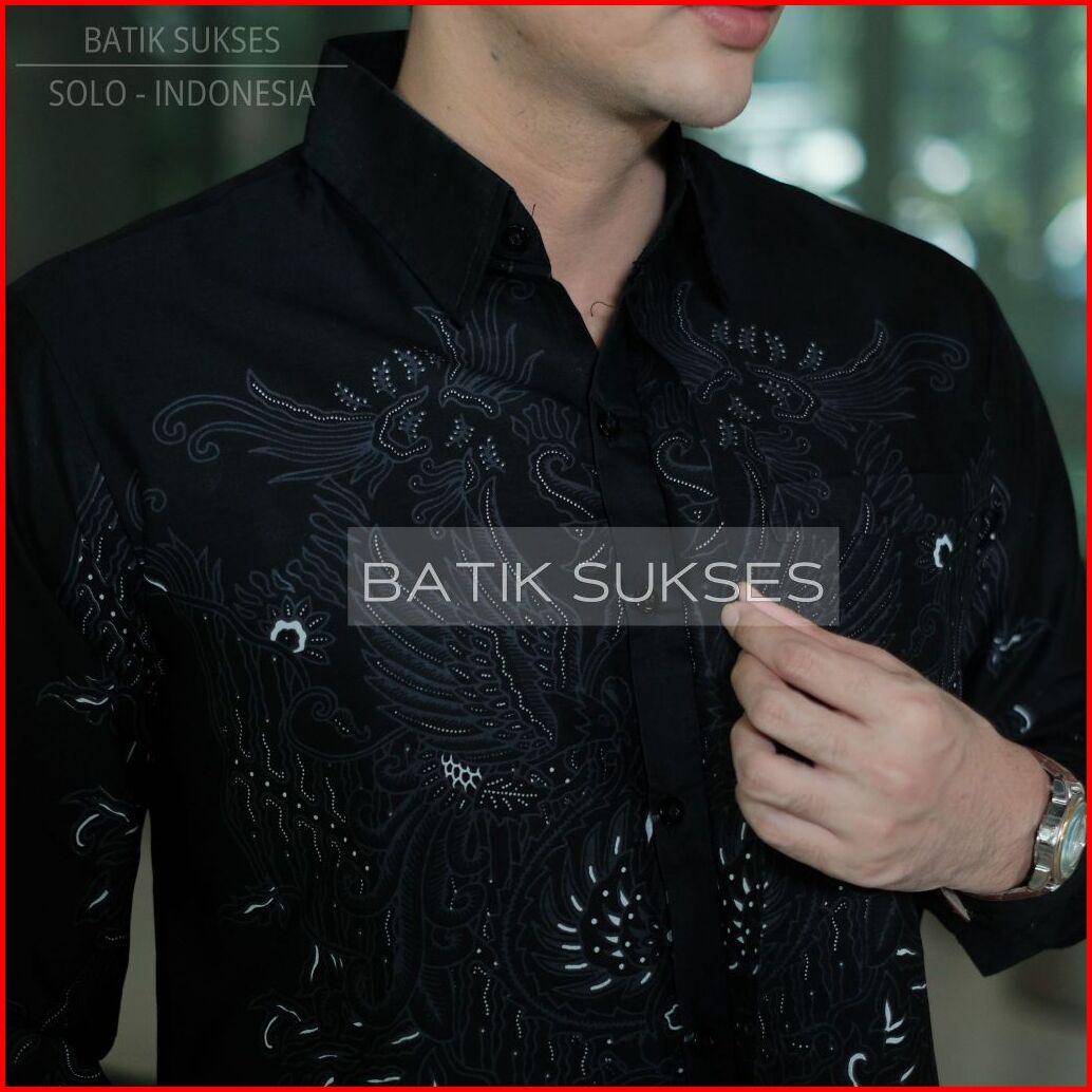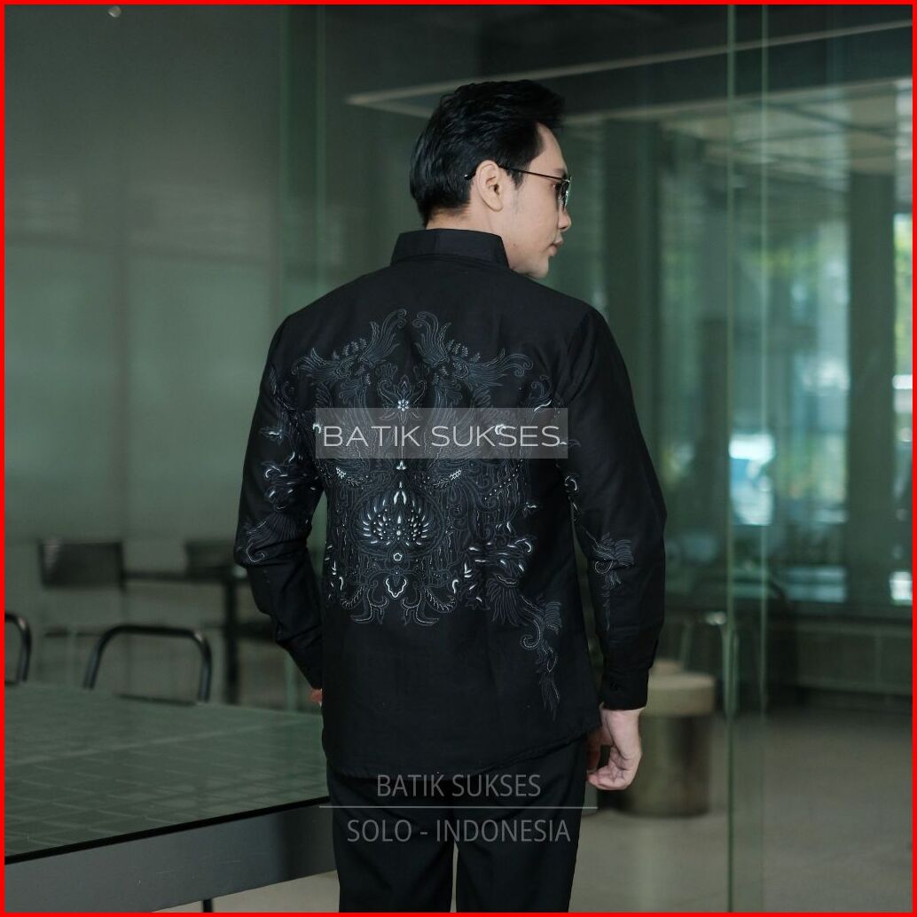Rajendra Kemeja Baju Batik Pria Slimfit Premium Lapis Furing Katun Halus Primisima Warna Hitam Casual Anak Muda
