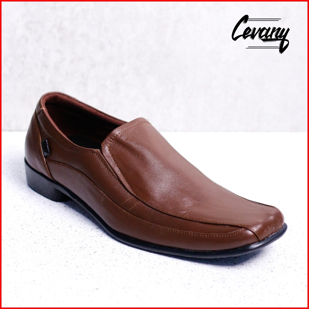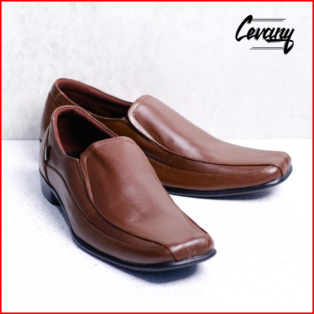 Cevany Sepatu Pantofel Pria Formal Kulit Asli Geovani S - G04 Coklat