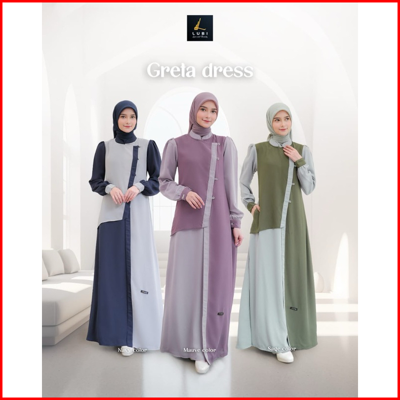 Lubi Gamis Greta Dress Navy Mauve Sage Greeta