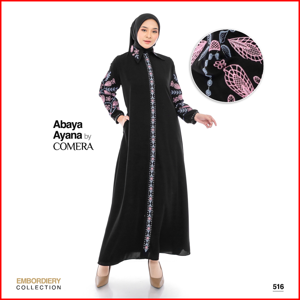 Comera - Abaya Ayana Gamis Turkey Hitam Jetblack Bordir Payet Dress Lebaran Pesta Kajian Umroh 516