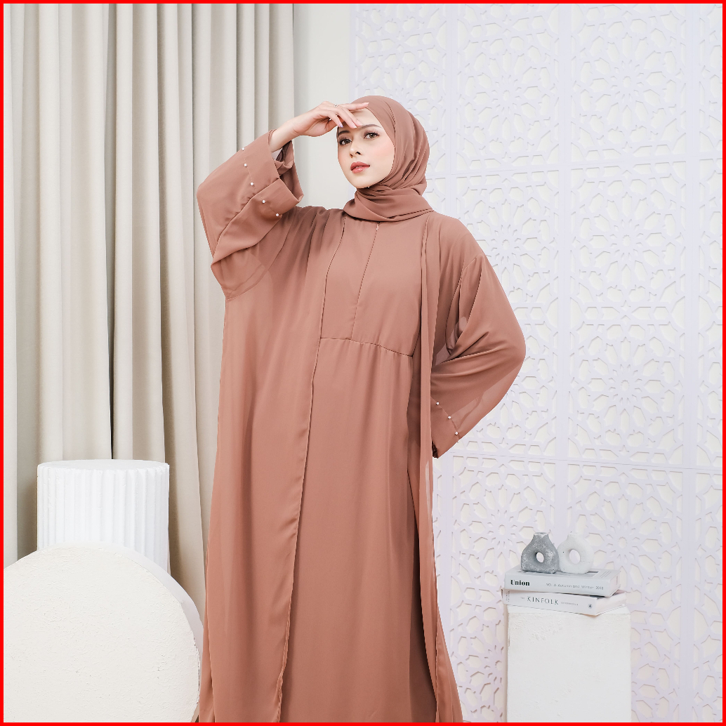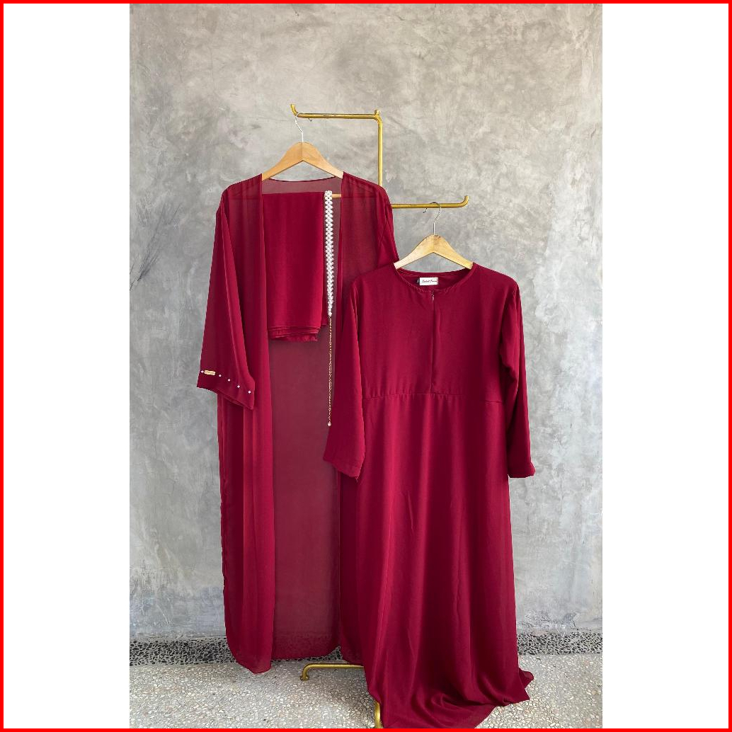 Abassya-alesha Set Abaya Bahan Ceruty Babydoll Full Furing 4in1 Busui Friendly Free Pashmina