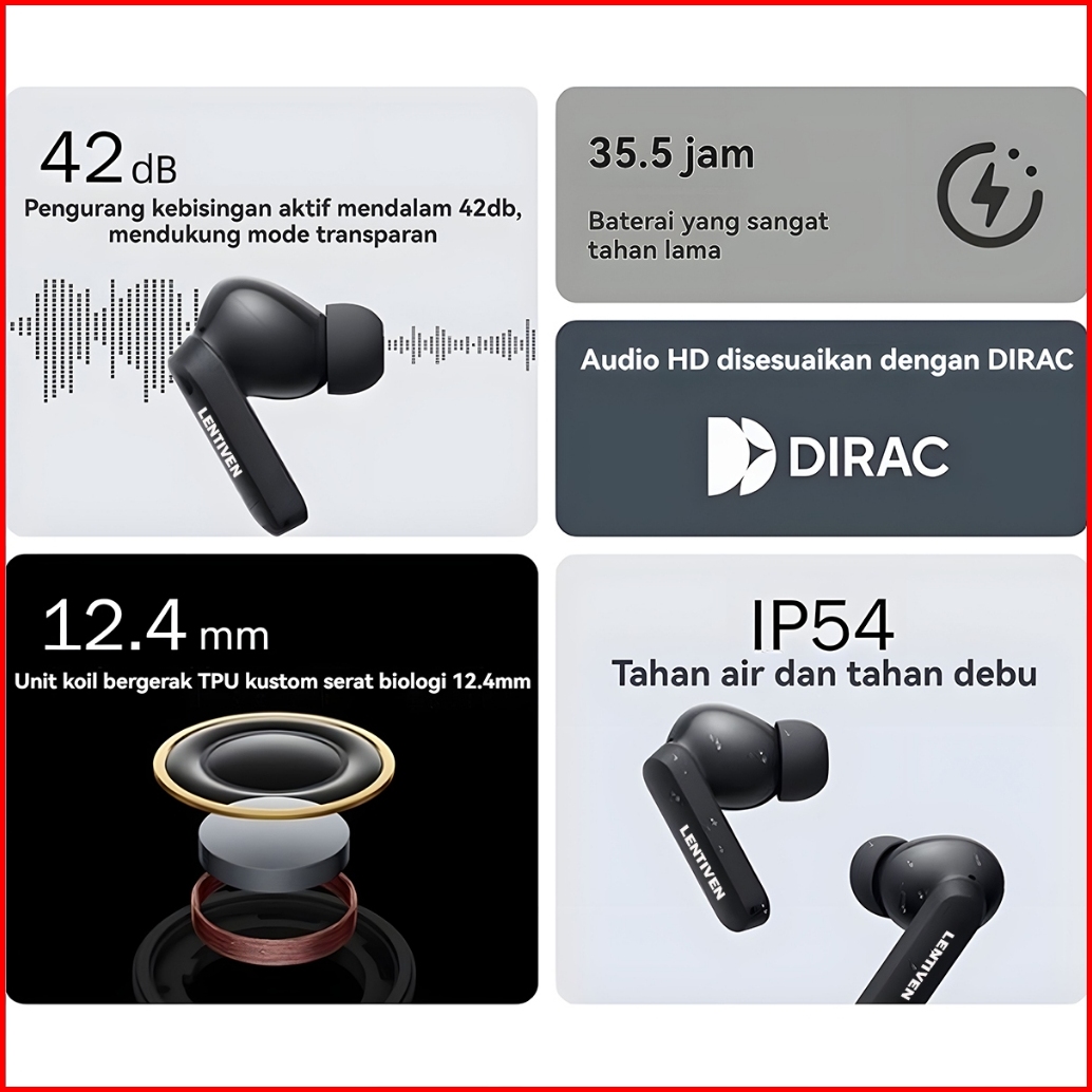 Salys Lentiven Earbuds Tws Wireless Earphone Bluetooth Headset Ipx4 Bt 5.5 Garansi 1 Tahun Mf10