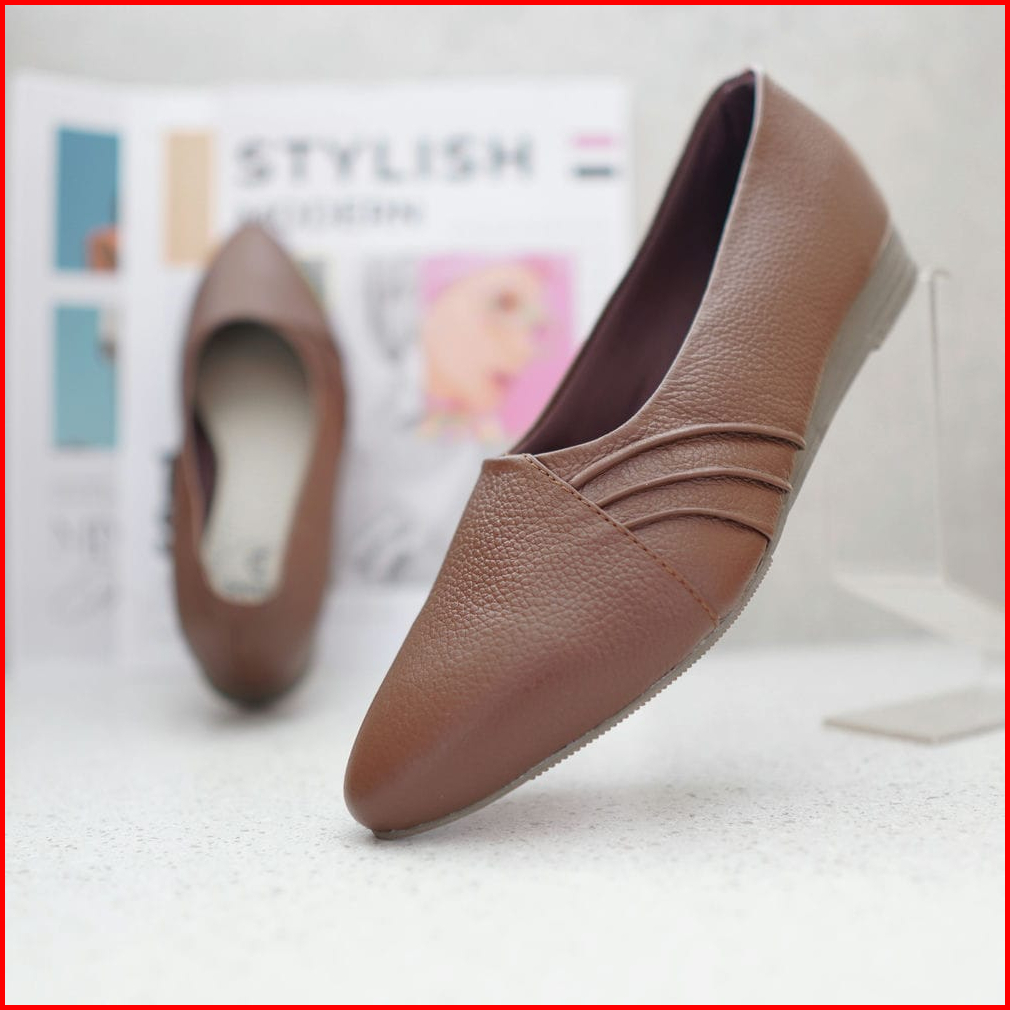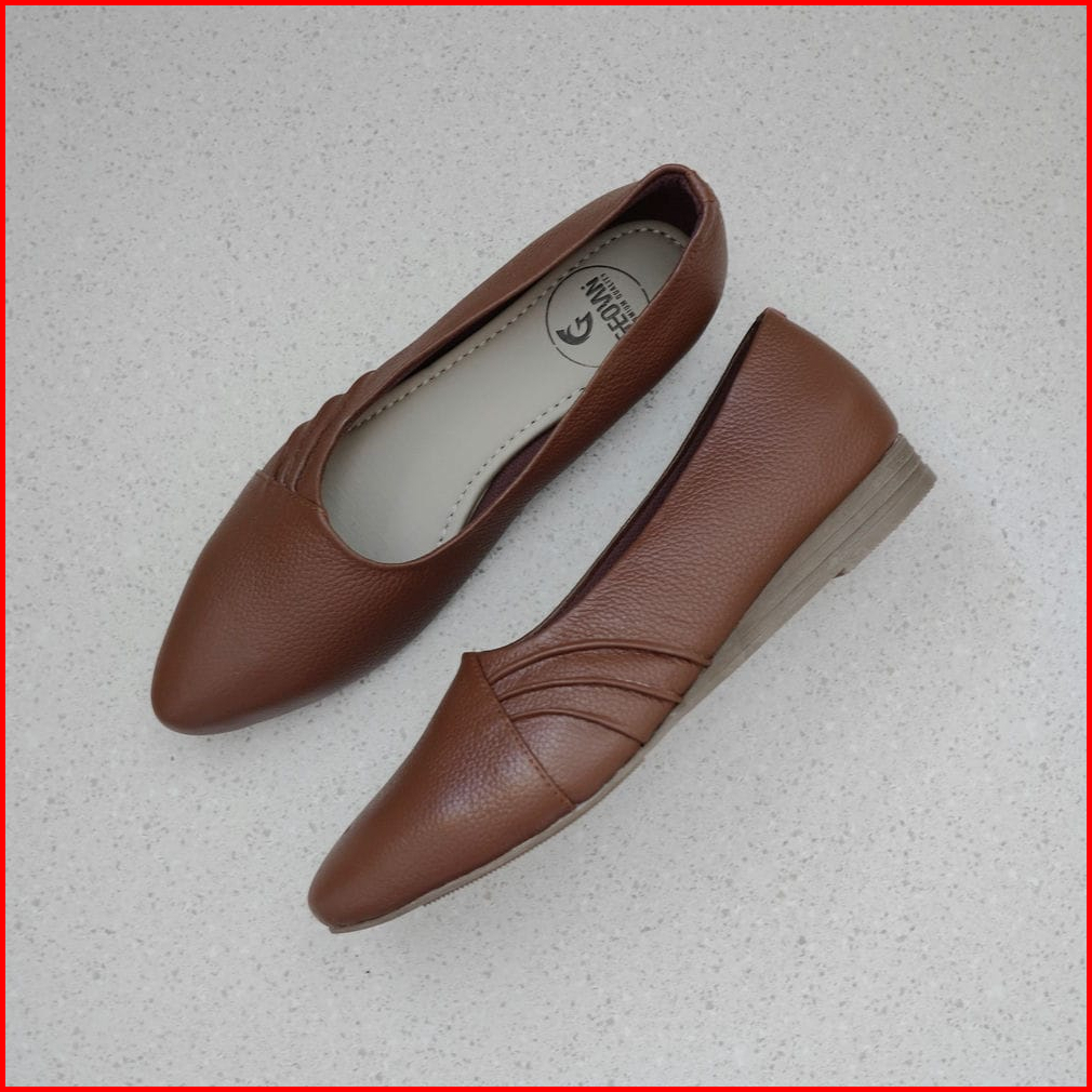Cevany Sepatu Flat Shoes Wanita Kulit Coklat Chiara