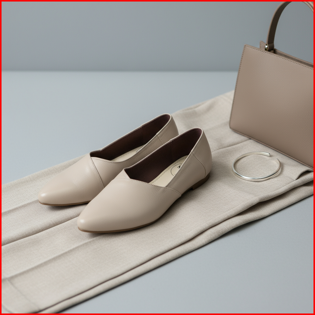 Cevany Sepatu Kerja Wanita Flat Formal Kulit Asli Geovani S - Pp02 Cream