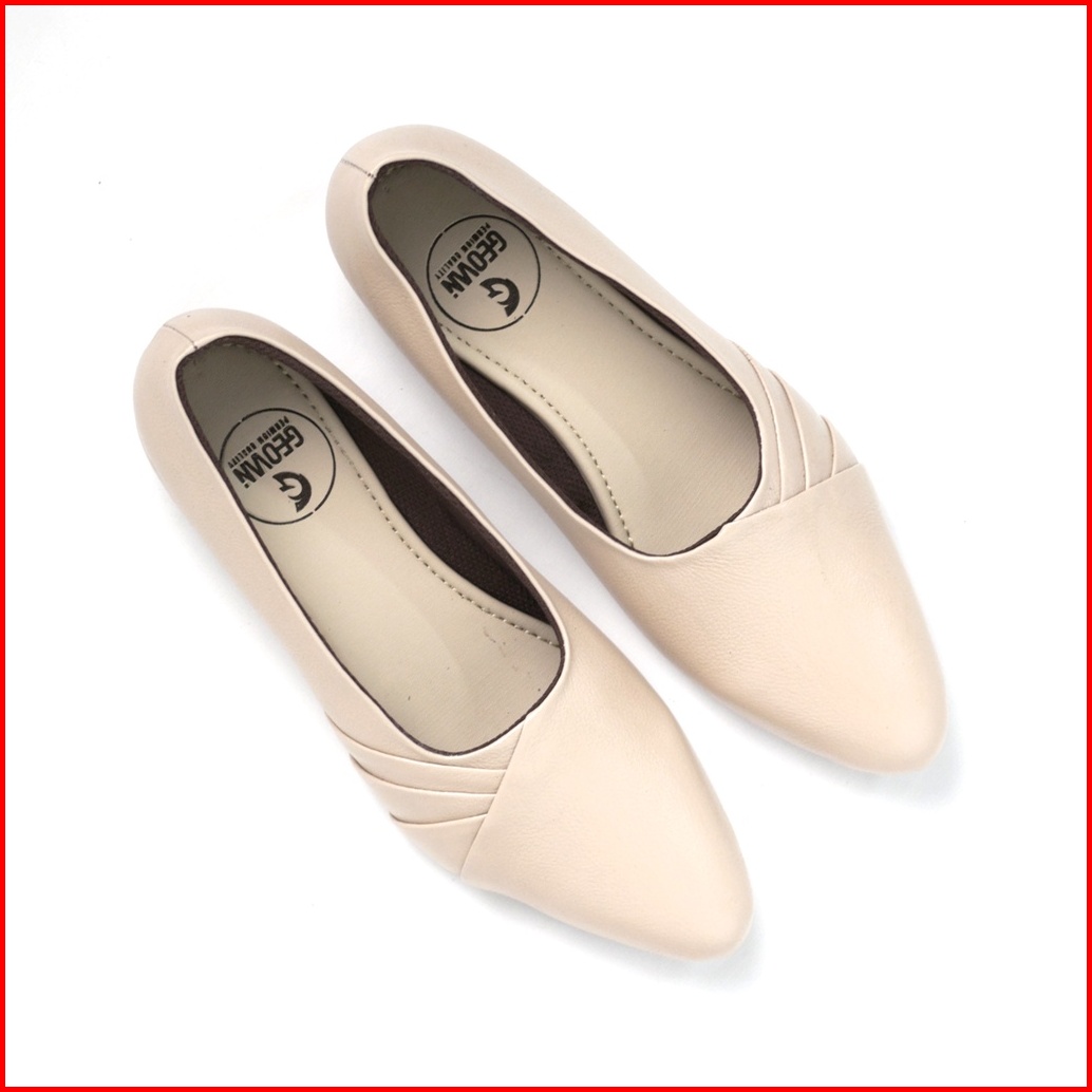 Cevany Sepatu Flat Shoes Wanita Kulit Krem Chiara