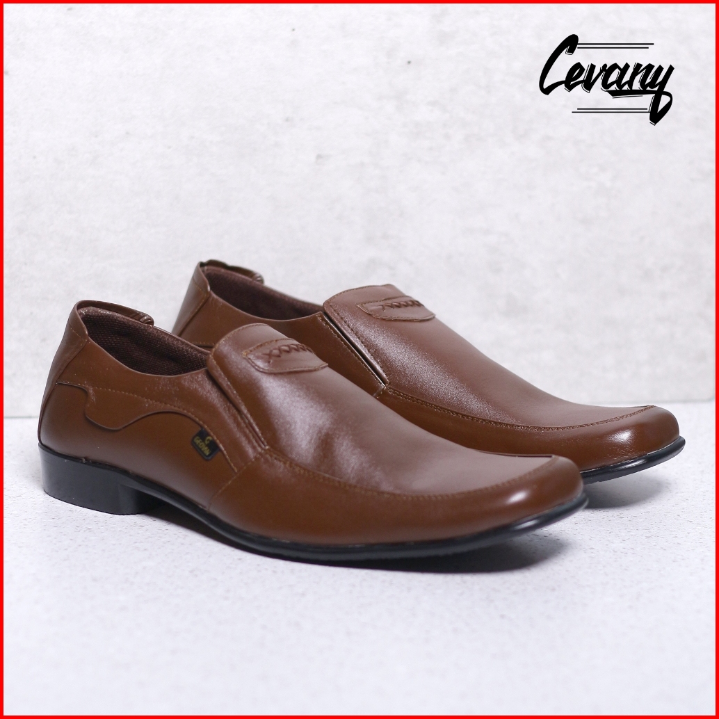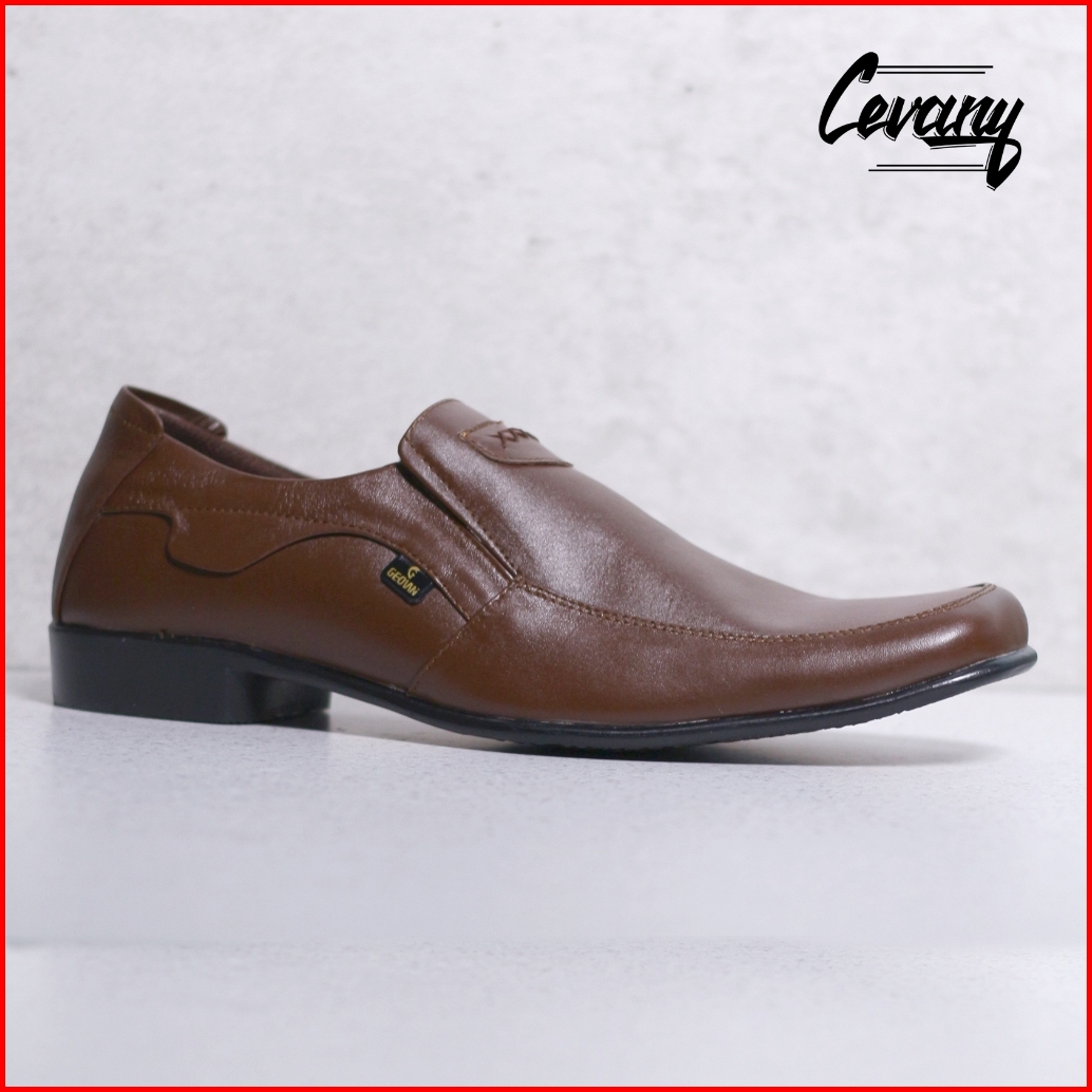 Cevany Sepatu Pantofel Pria Formal Kulit Asli Geovani S - G05 Coklat