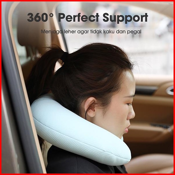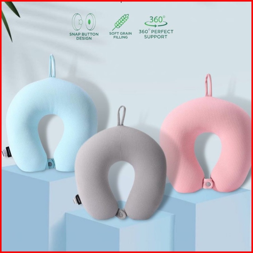 Bantal Leher - Bonbox Snp001 Neck Pillow With Snap Button Bantal Leher Travel Anti Pegal Lembut Dewasa Multifungsi 360 D