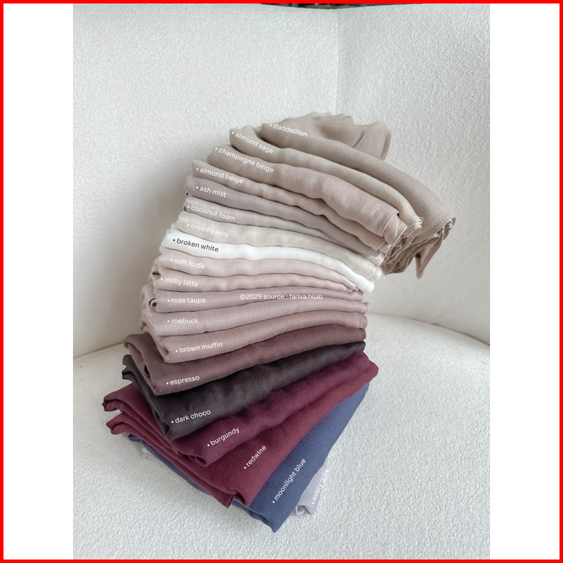 Broken White, Misty Grey, Redwine, Burgundy, Roebuck, Soft Nude, Almond Beige, Milky Latte, Ash Mist, Champagne Beige, Almond Sage, Creamy Milk, Rose Taupe, Coconut Foam, Dandellion, Brown Muffin, Espresso, Moonlight Blue, Dark Choco, Greentea, Foggy Choco, Malted Chocolate, Black Choco, Ash Cloud, Oatmeal, Choco Earth, Sand Pink, Macaroon, Tiramissu, Mahogany
