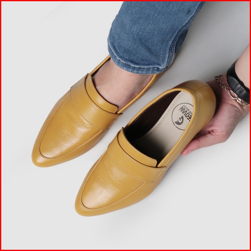 Cevany Sepatu Flat Shoes Wanita Kulit Tan Caroline