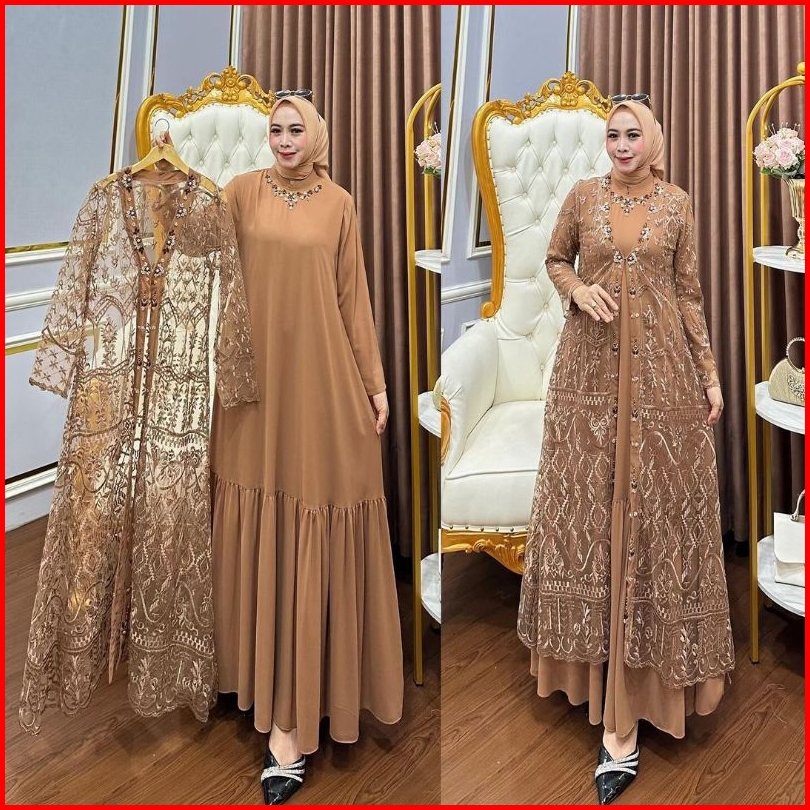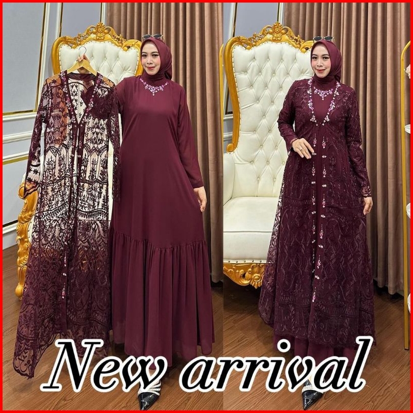 Arimbi Set Outer Gamis Ceruty Mix Burkat Payet Gamis Set Mewah Gamis Pesta Gamis Burkat Lebaran