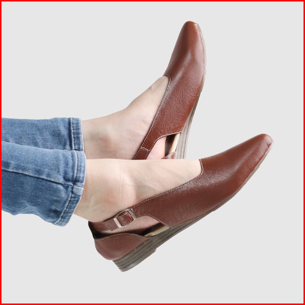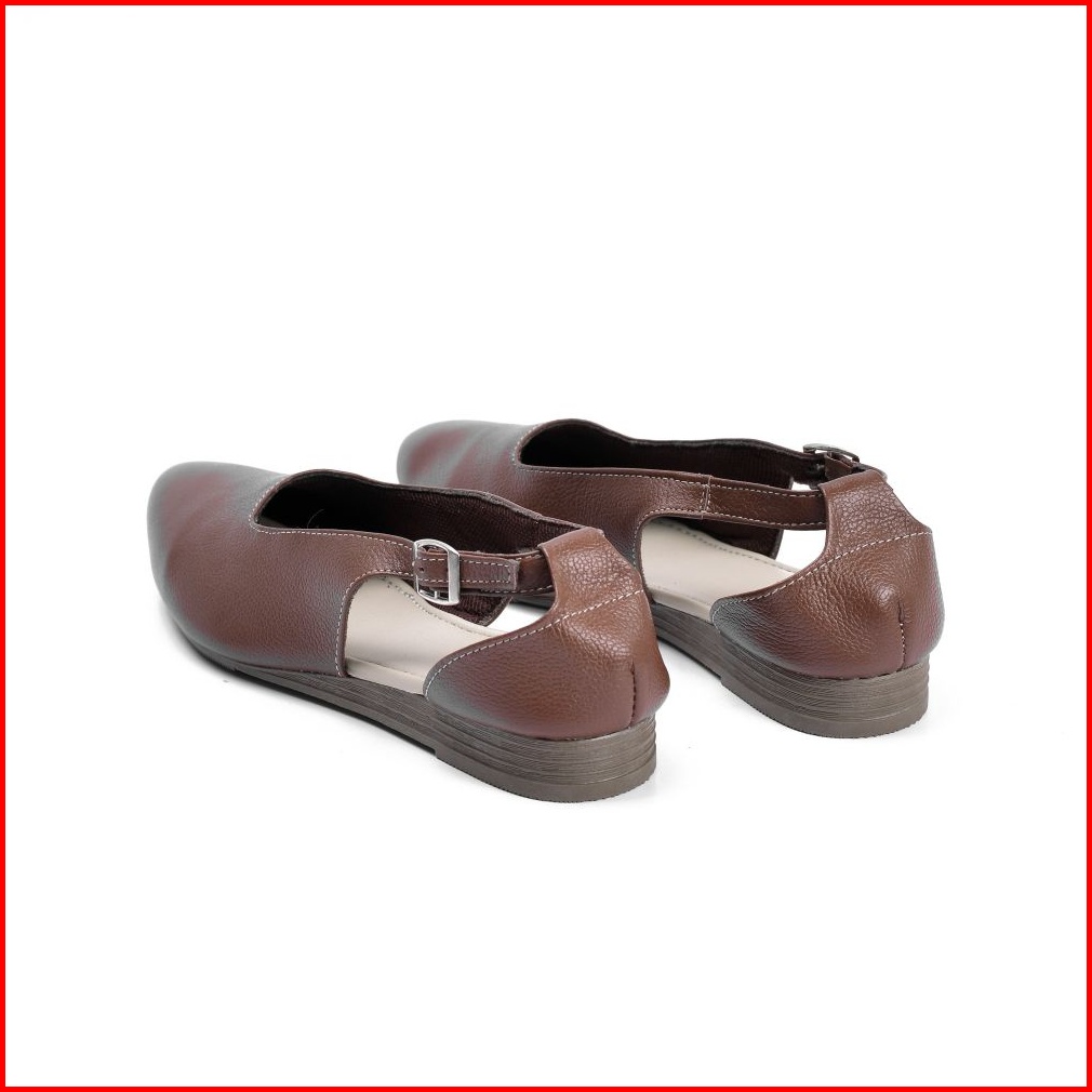 Cevany Sepatu Kerja Wanita Flat Formal Kulit Asli Geovani S Audrey - Coklat