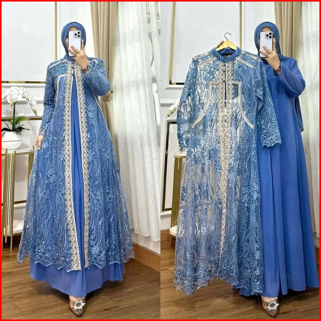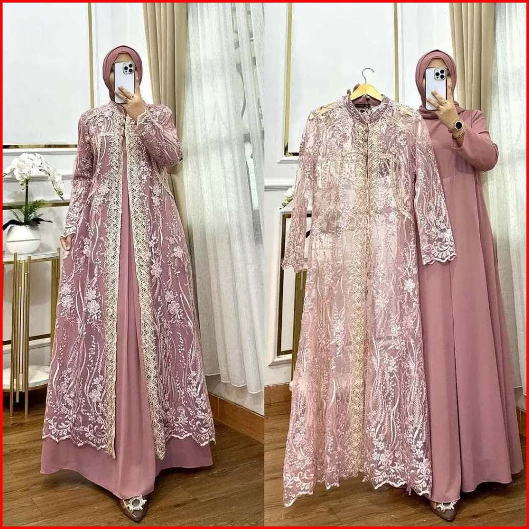 Amora Dress Gamis Brukat Kondangan Kekinian Bahan Ceruty Babydoll Mix Brukat Aplikasi Renda