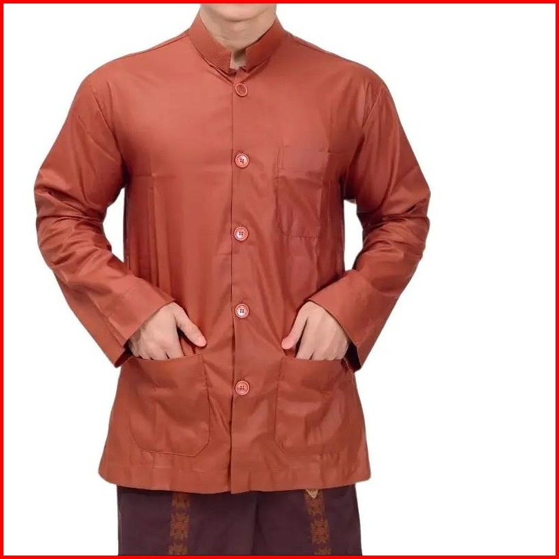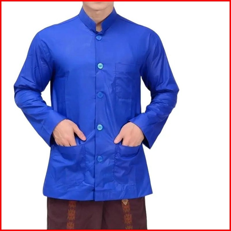 Baju Koko Pria Lengan Panjang Saku Depan Muslim Dewasa Putih Polos Premium Seragam Majlis Taklim