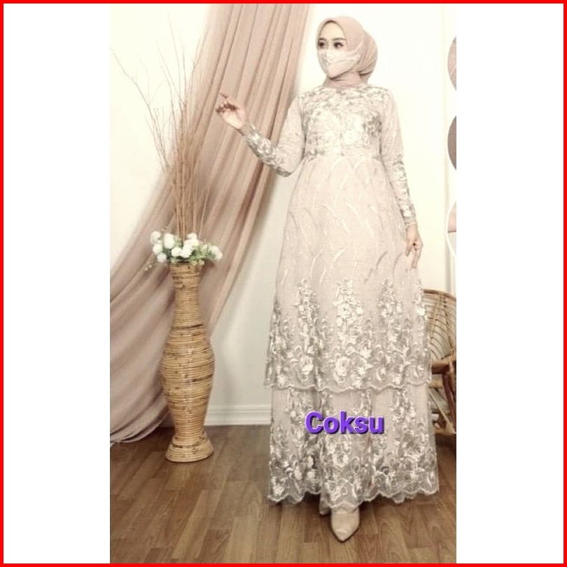 Termurah Gamis Malaysia Amira Dress Brukat Premium 2 Tingkat Baju Remaja Dewasa Wanita Pesta Kondangan Jumbo Kekinian Te