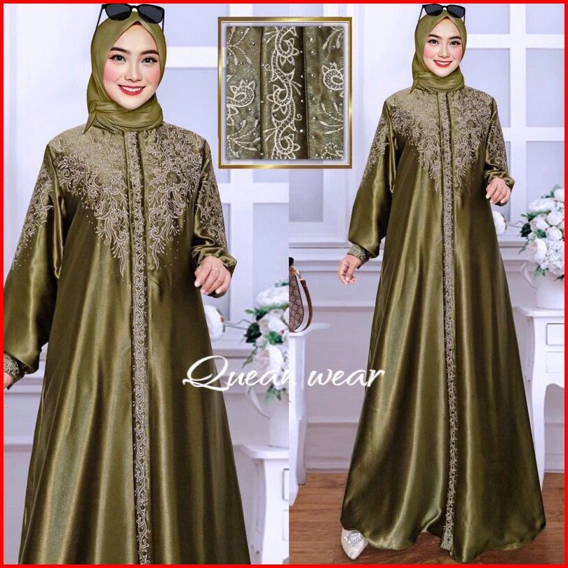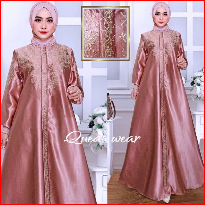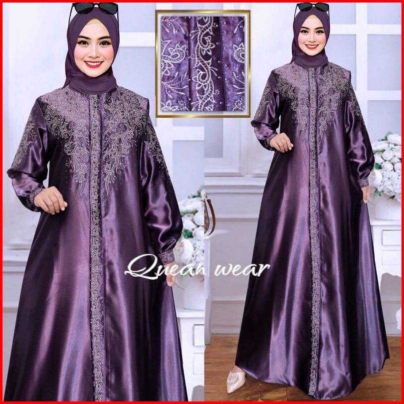 Gamis Bordir Satin Kristal Premium Mewah Fashion Wanita Dress Busui Freindly Motif Wanitanur