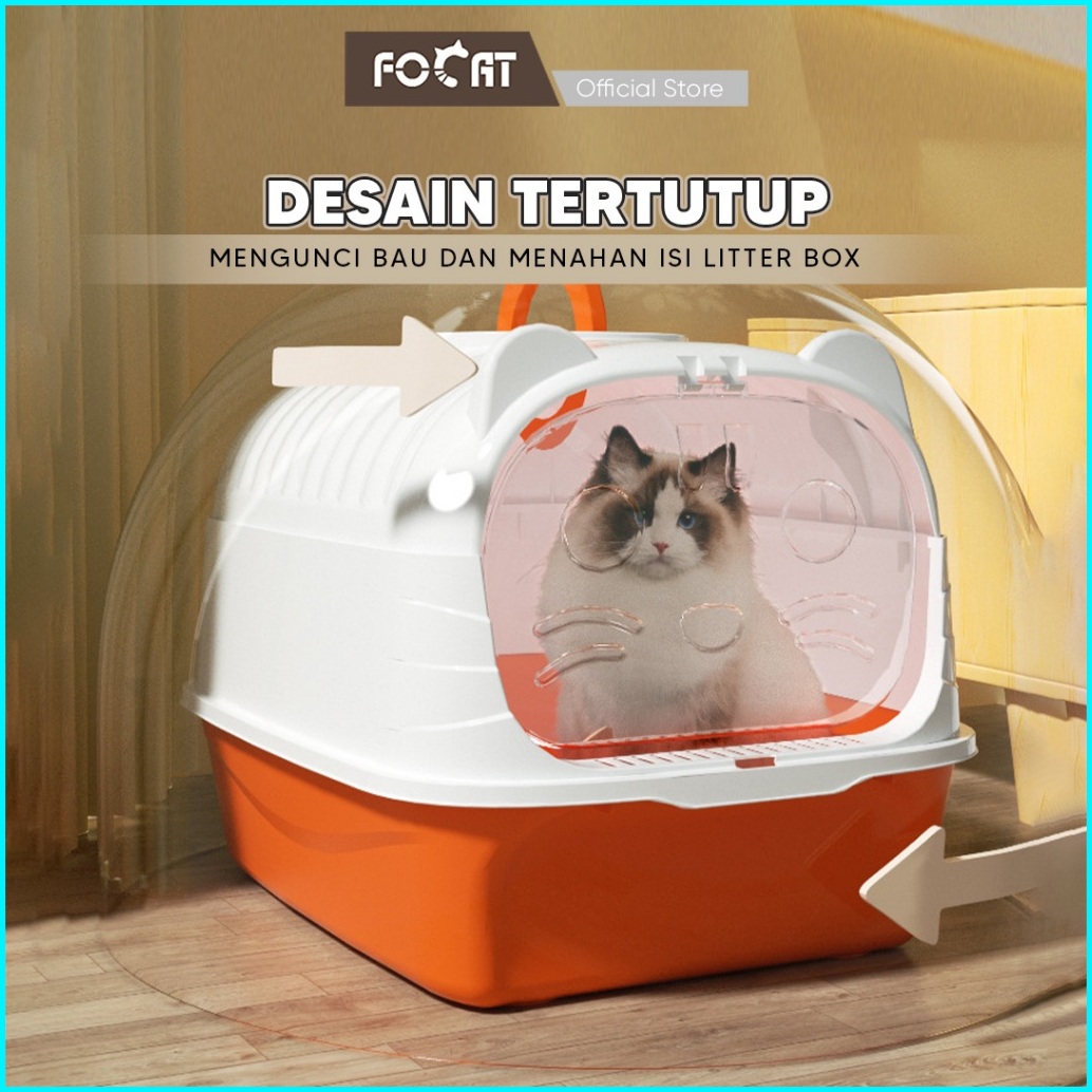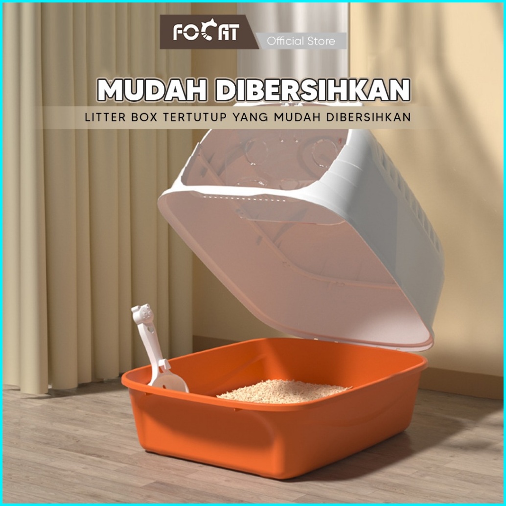 Focat Pet Litter Box Kucing Tertutup M21 Cat Litter Box Bak Toilet Pasir Kucing Gratis Sekop Pasir