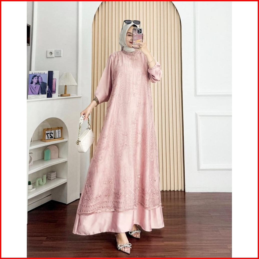 Ameella Dress Bahan Velvet Premium Mix Ful Brukat Gamis Kondangan Pesta Mewah Simple Elegant Terbaru