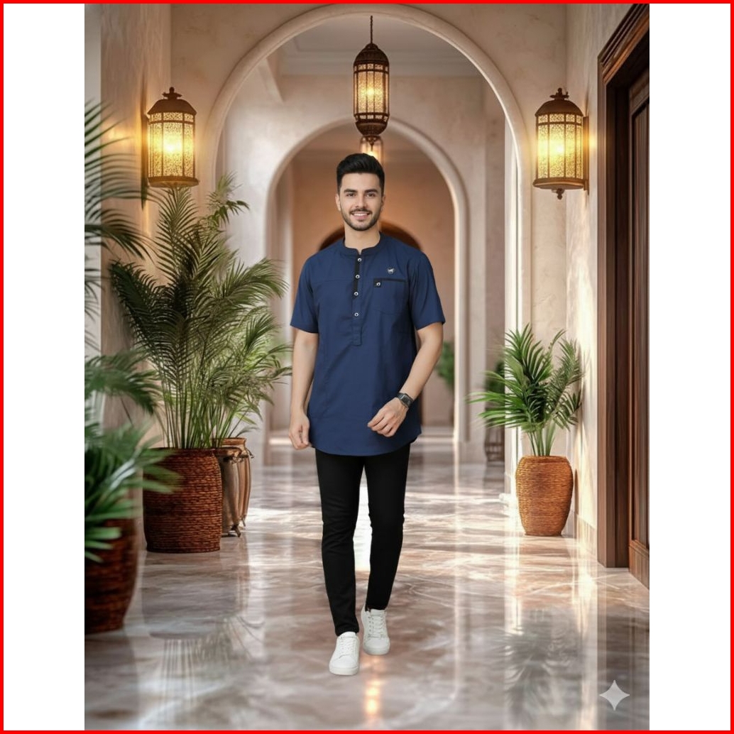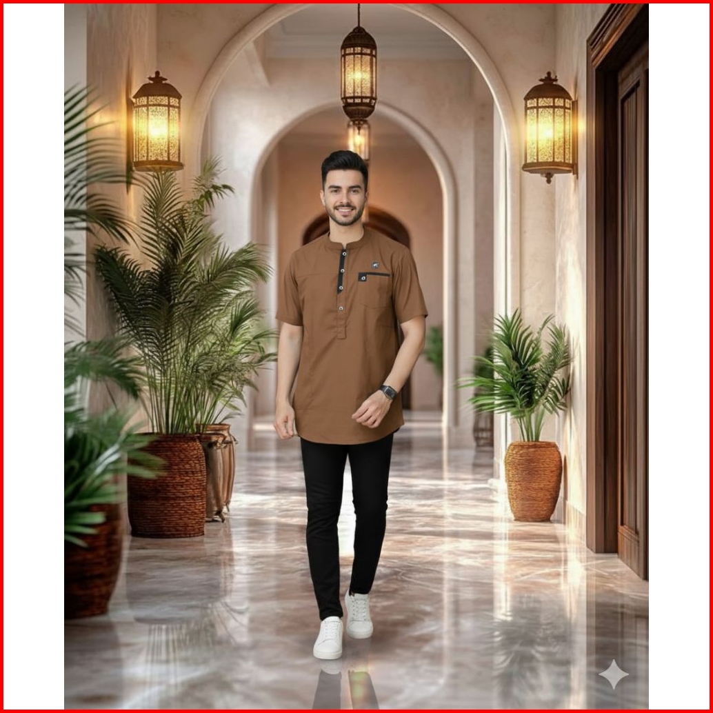 Baju Koko Muslim Kurta Lengan Pendek Pakaian Pria Dewasa Kekinian Kualitas Premium Trend 2026