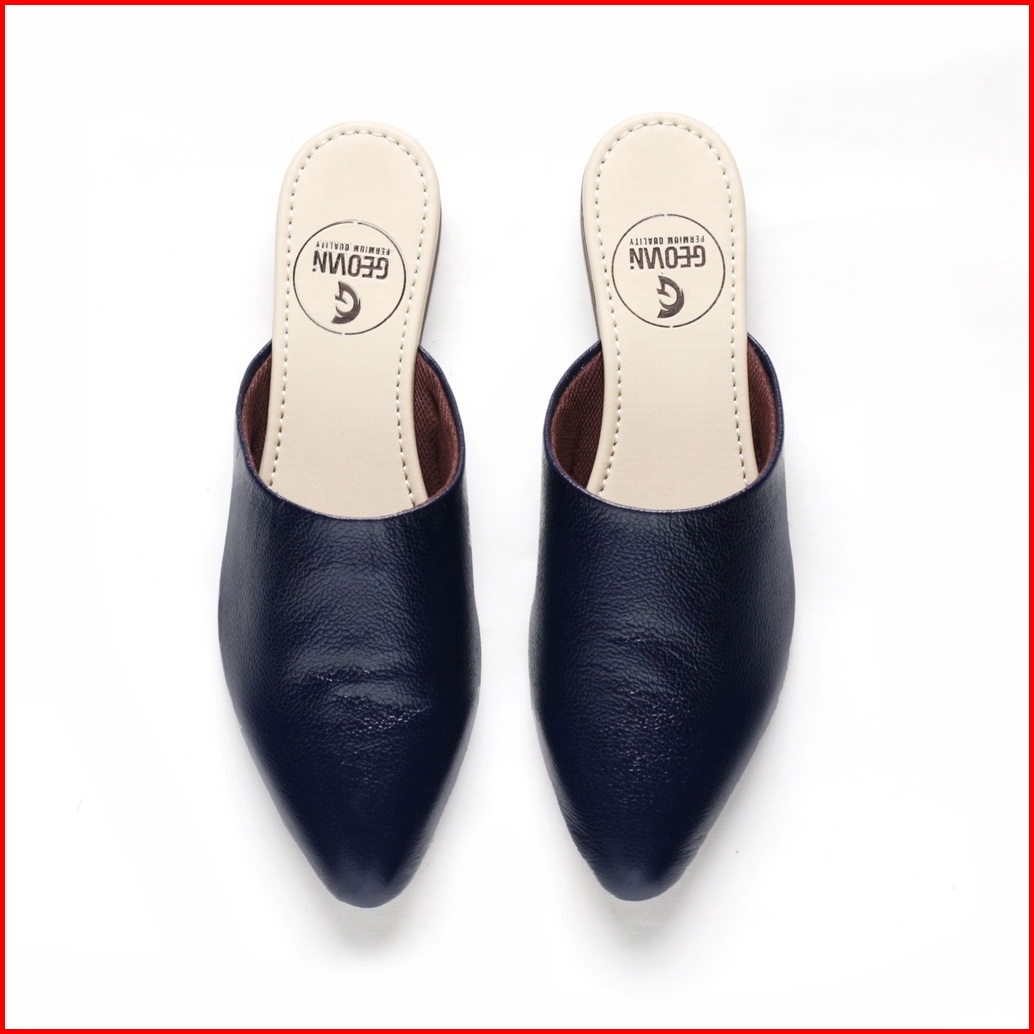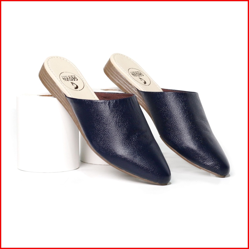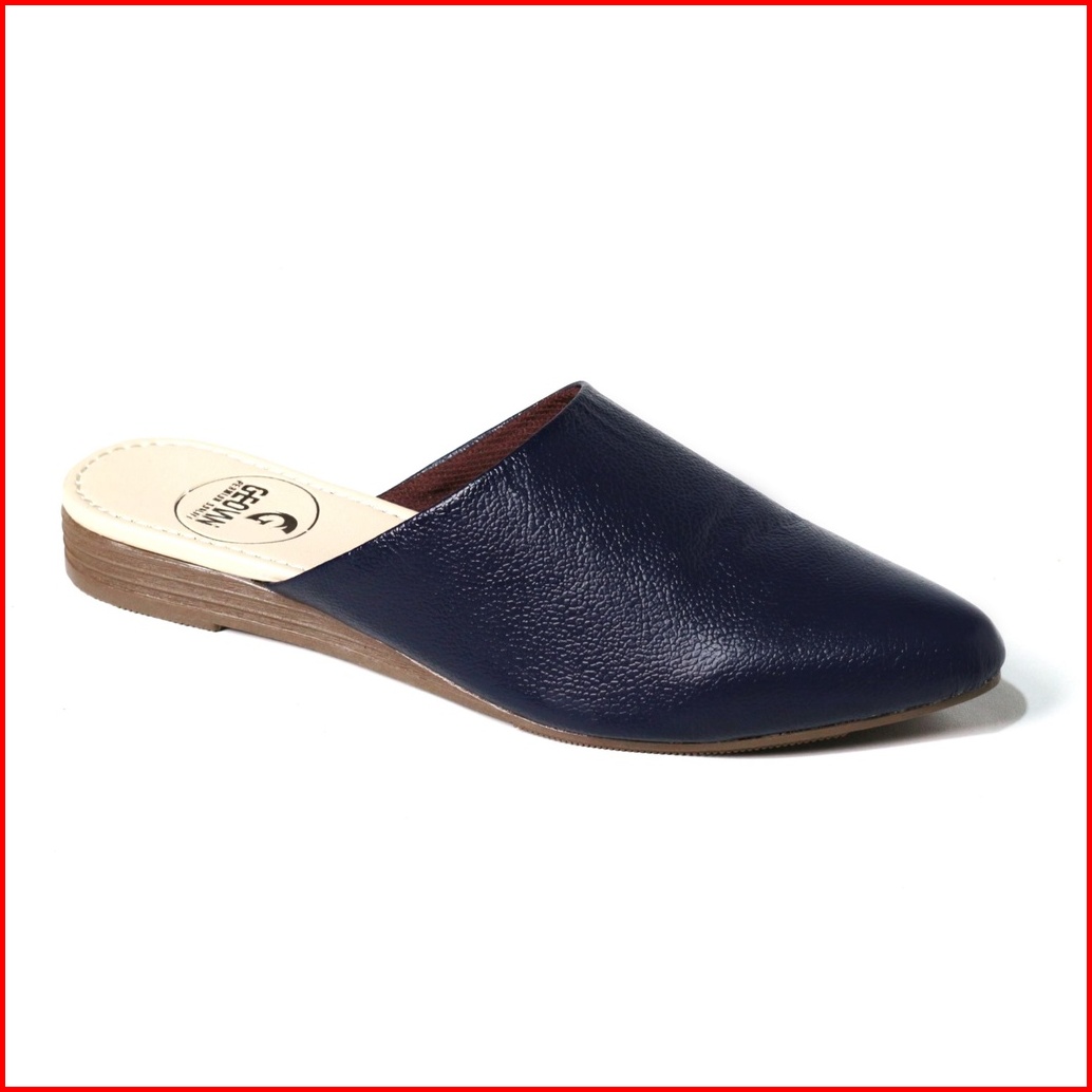 Cevany Sendal Wanita Bustong Kulit Asli Geovani S - Navy Gb01