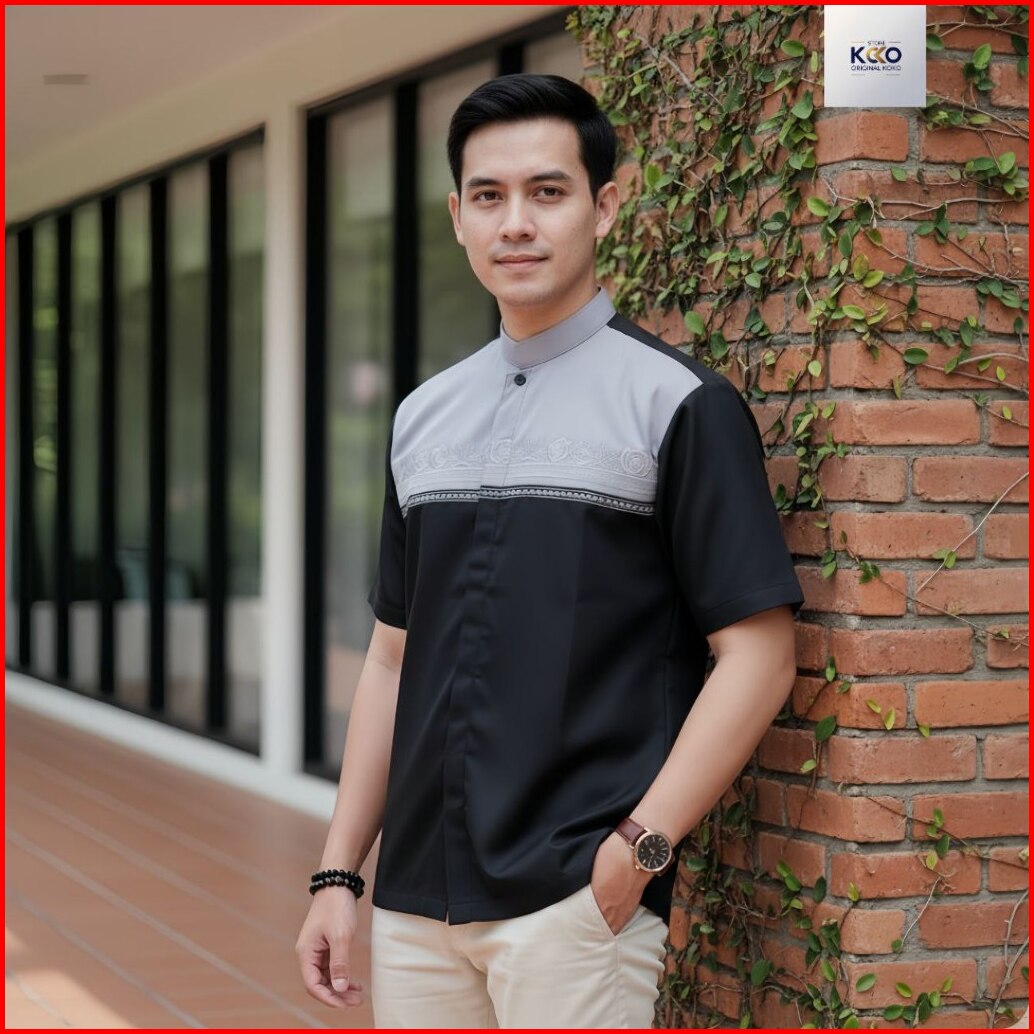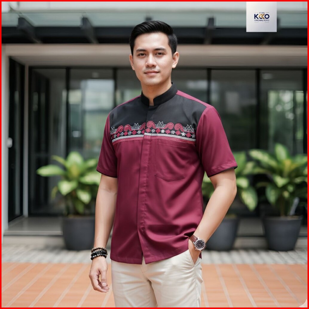 Baju Koko Pria Dewasa Kombinasi Bordir Eksklusif New Collection Lengan Pendek New Update