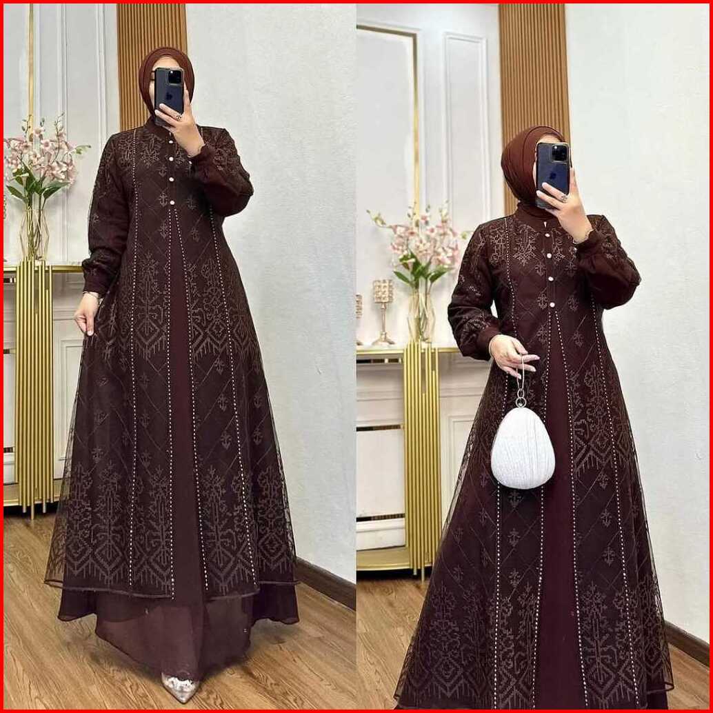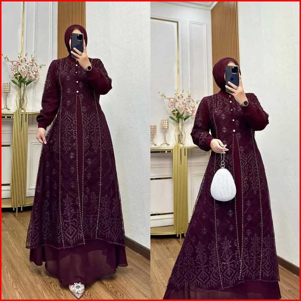 Denara Dress Pesta Ceruty Babydoll Mix Brukat Aplikasi Swarovki Mewah Elegant Gamis Kondangan Simpel