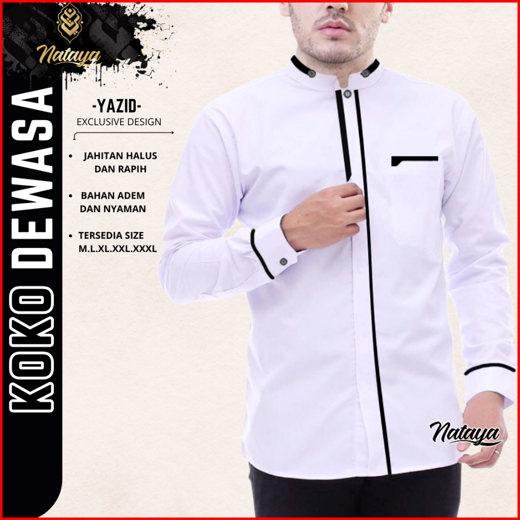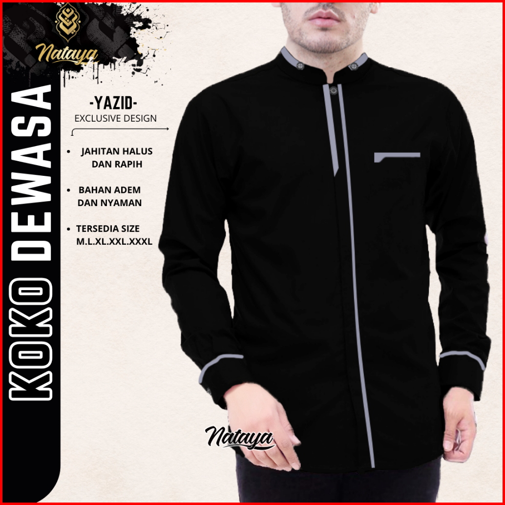 Nataya Baju Koko Pria-koko Lengan Panjang Motif Yazid Warna Lengkap Bahan Toyobo Size M L Xl Xxl Xxxl