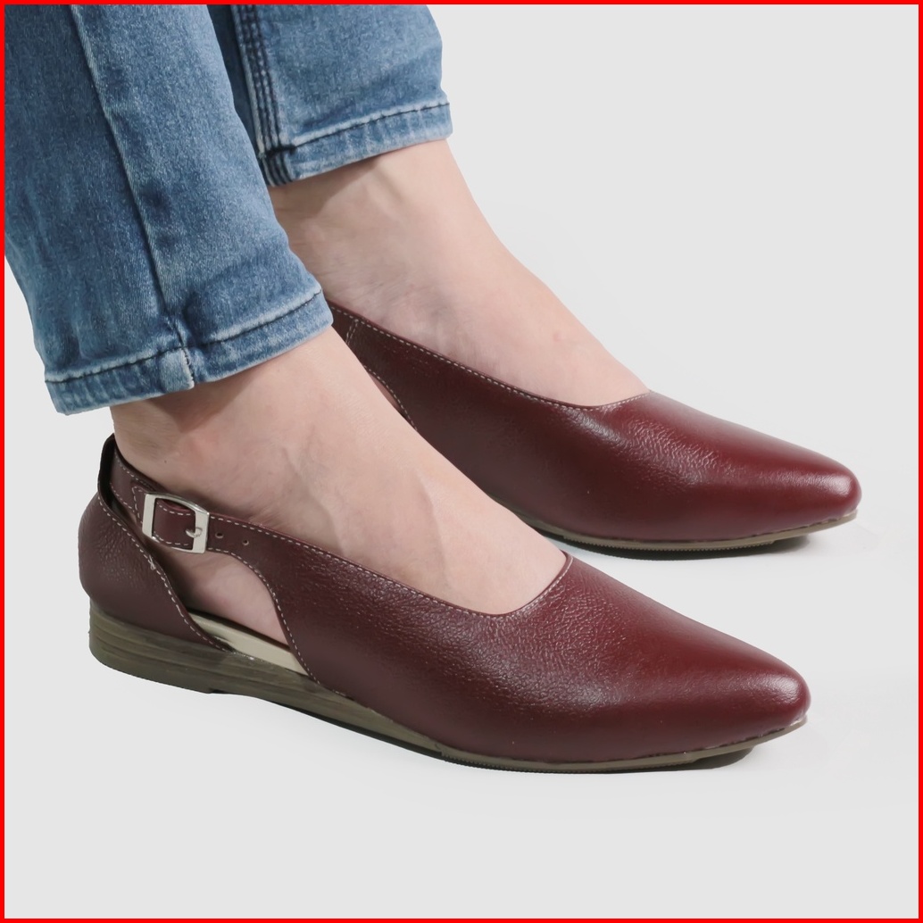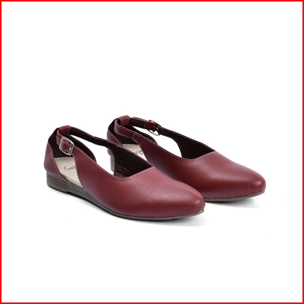 Cevany Sepatu Kerja Wanita Flat Formal Kulit Asli Geovani S Audrey - Maroon