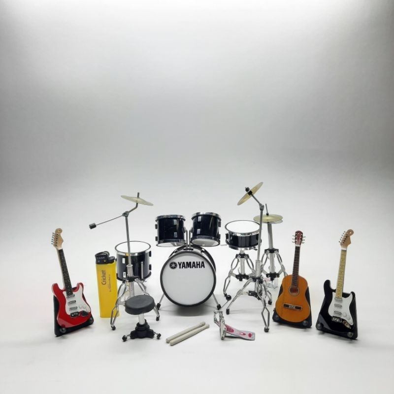 miniatur drum set YAMAHA 1/12 plus miniatur gitar 3 pcs cocok untuk pajangan