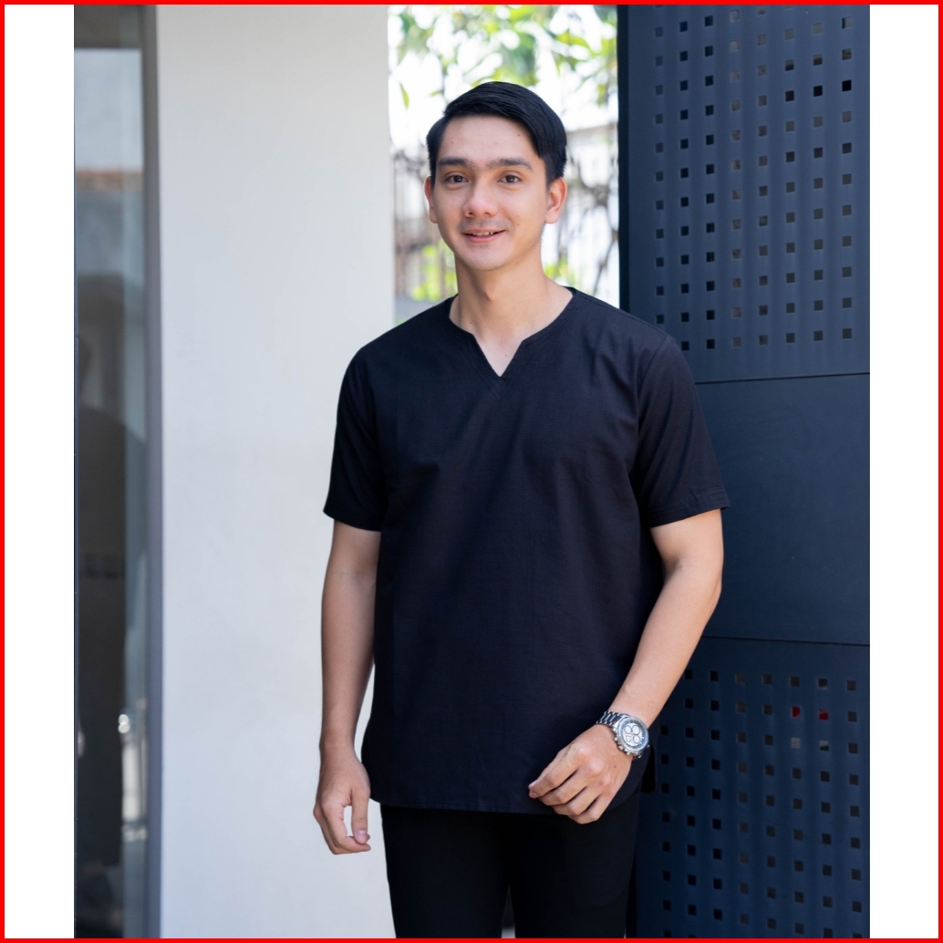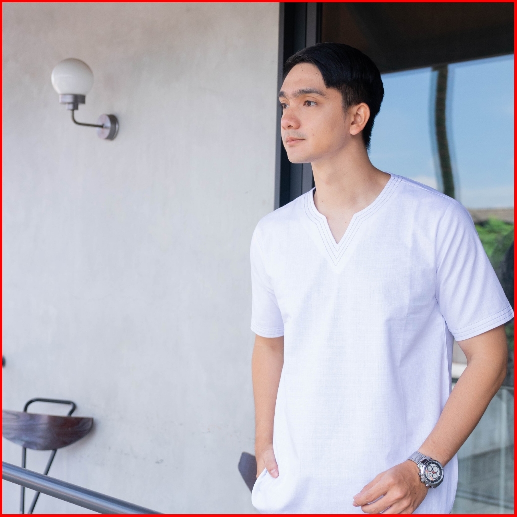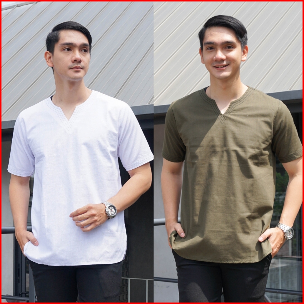 Zhafar Baju Koko Muslim Pria Lengan Pendek Polos Leher V Katun Tebal Terbaru