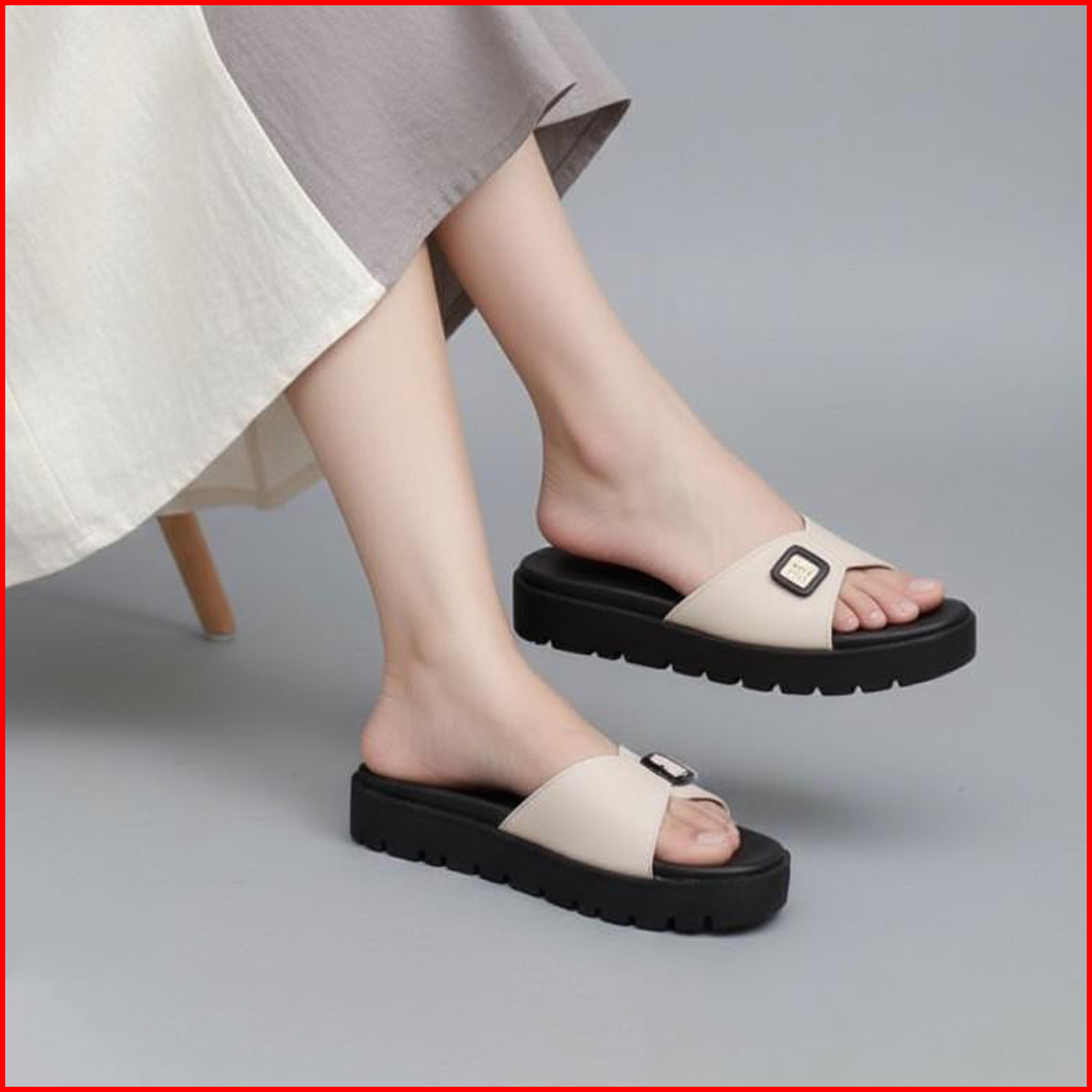 Gns Alinda Sandal Platform Wanita Kulit Premium Hak Tinggi - Krem