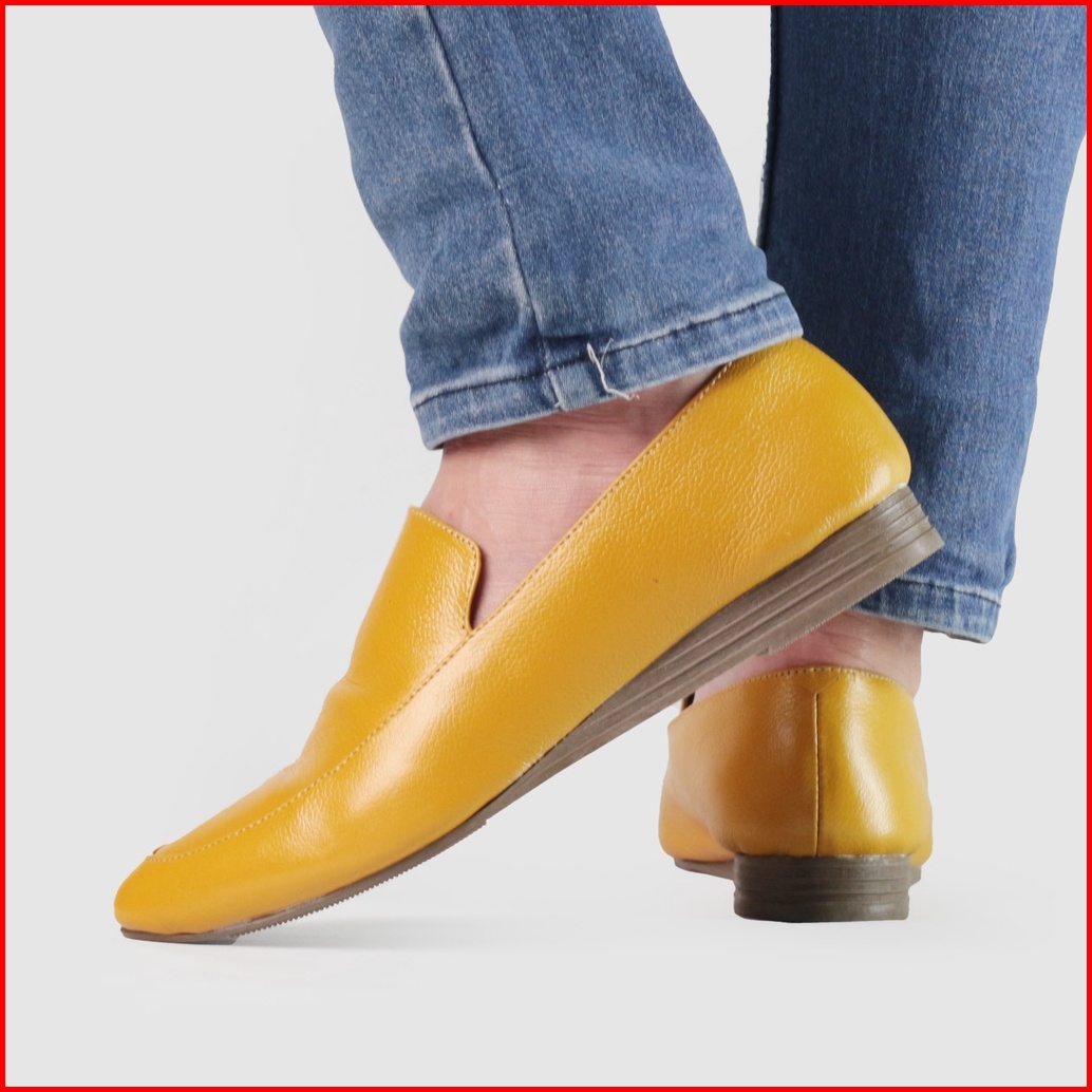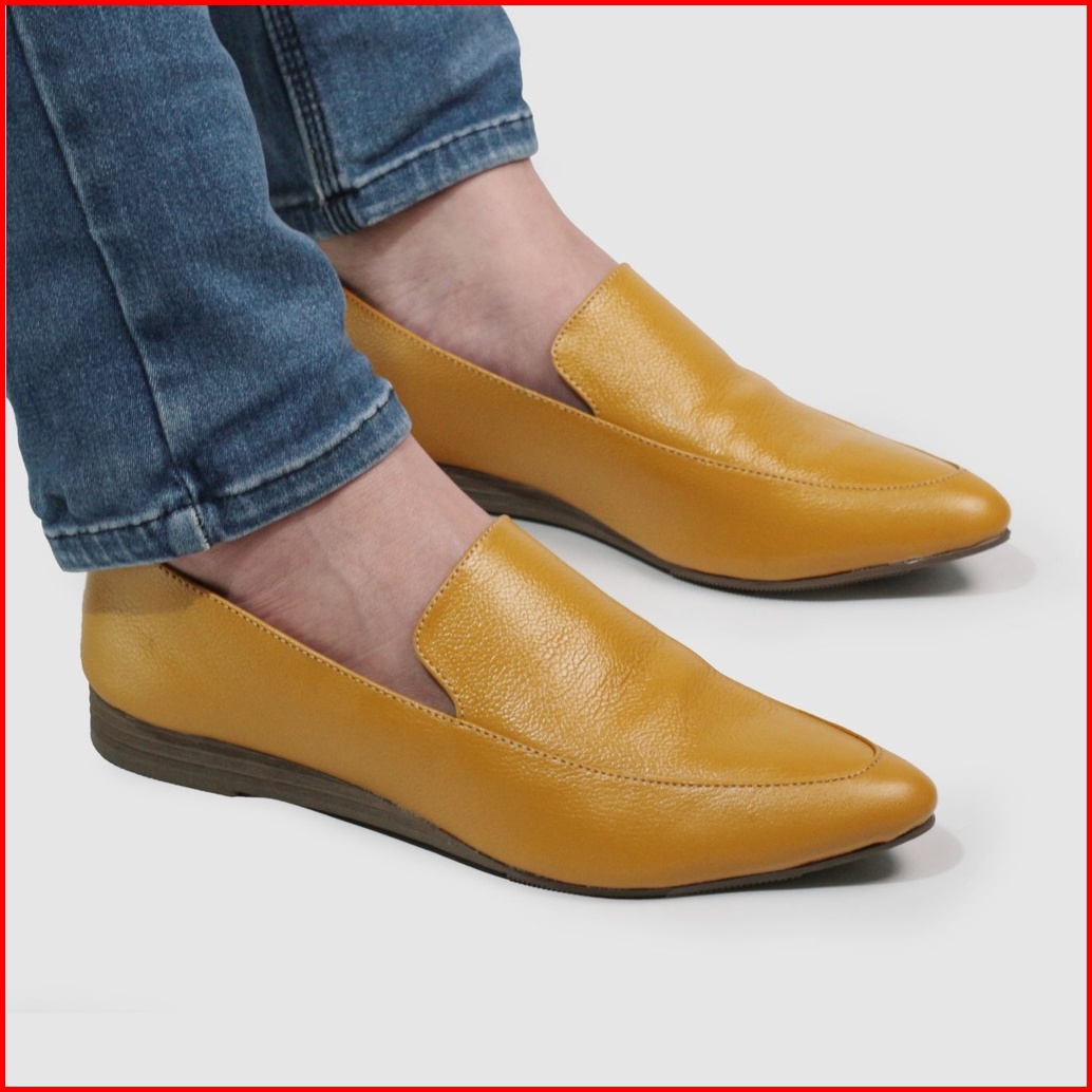 Cevany Sepatu Flat Shoes Wanita Kulit Tan Charlotte
